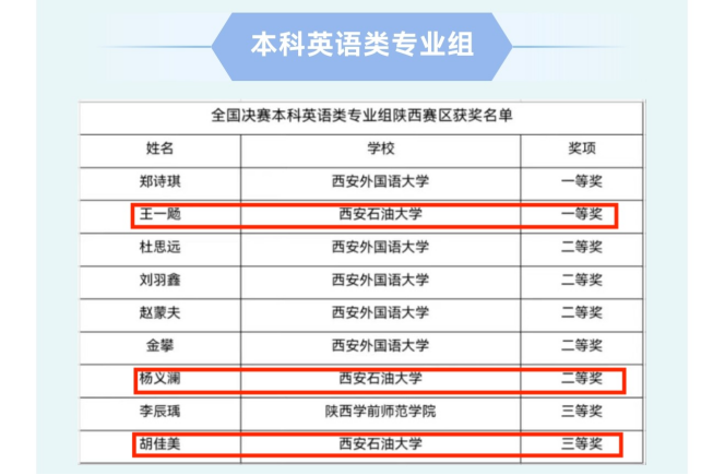 近年来,外国语学院在不断推进英语教学改革的同时注重培养学生的英语语言实践能力,以各类英语竞赛为载体积极拓宽实践平台。自大赛启动以来,学院号召各任课教师积极鼓励、推荐学生参加比赛,以赛促学,不断提升学生的语言能力,助力大学英语四、六级考试及英语专业四、八级考试。近年来,beat365学生陆续在该项比赛国赛中取得优异的成绩。之后,学院将继续以学科竞赛为抓手,赋能学生语言核心素养发展,不断提升学生的语言运用和跨文化交际能力。