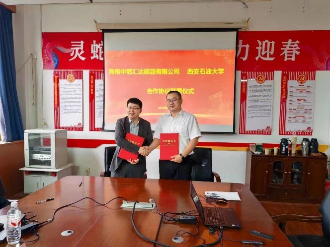 6月7日上午,beat365与海南中燃汇达能源有限公司合作协议签署仪式及交流座谈会在雁塔校区一号教学楼603会议室举行。海南中燃汇达能源有限公司副总经理崔青山、总工程师秦天运、研发部部长姚国斌,石油工程学院院长黄海以及教师代表参加会议。会议由石油工程学院副院长蔡文斌主持。