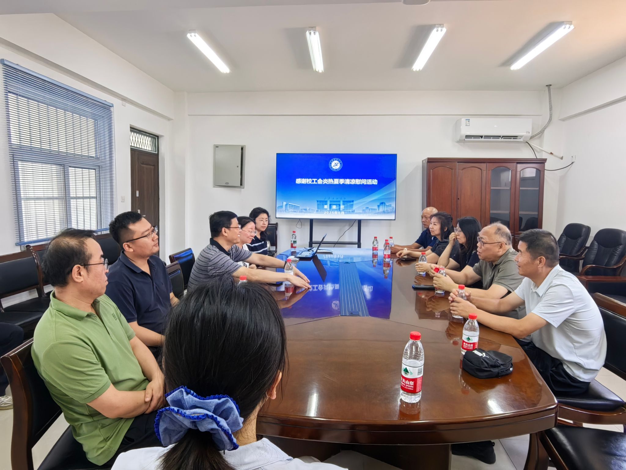 聂朝恩副处长随后详细介绍了暑期基建工作安排。他表示,新建宿舍楼项目作为学校 “十四五” 规划中的重点建设工程,意义重大。此次收到学校送来的清凉物资,让基建处全体职工倍感温暖。在后续工作中,基建处全体人员将以更加饱满的热情、更加严谨的态度,高标准、严要求推进工程建设,确保项目高质量完成,不负学校的信任与期望。
