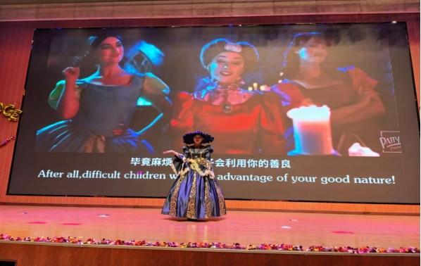 本次汇报演出共24个节目,分别由《英语电影赏析》《英语歌曲与英语文化》《中国文化推介》《跨文化交际视听说》《英汉翻译技巧与实践》和《实用英语写作》6门大学英语拓展课程的同学及教师参演。节目异彩纷呈,涵盖了电影配音、拓展课程介绍、歌曲演唱、英语话剧、跨文化情景剧短视频、舞蹈、相声等多种形式。在本次课程汇演的舞台上,外国语学院第一教学部拓展课程组教师温情献唱,致敬成长,倾情演绎歌曲《送你一朵小红花》。他们从讲台走向舞台,用温暖而真挚的歌声传递着对莘莘学子的关爱与期许。这首饱含鼓励与祝福的旋律,在师生心中播撒下温暖与力量,成为汇演中一抹动人的亮色,生动诠释了和谐融洽、积极向上的校园文化氛围与教育温度。