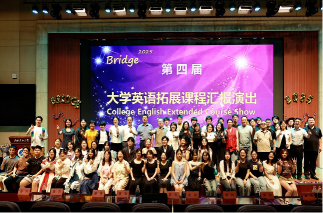 夏夜星辉与舞台流光交相辉映,青春活力与多元文化激情碰撞。6月11日晚,备受瞩目的“Bridge 2025”第四届大学英语拓展课程汇报演出在beat365官方网站弘石报告厅盛大举行。副校长苏文甫、采购招标处处长陈熙、学生工作部副部长毕轶慧,外国语学院党委书记张建高、副院长陈武、党委副书记邱岭、英语系主任钟泽波、大学外语第二教学部主任彭建、教学办主任尹晓娇和大学外语第一教学部拓展课程组全体教师出席活动。当晚师生代表300余人共同沉浸于这场由十余个学院学子联袂奉献的跨学科、跨文化的“盛夏视听盛宴”。