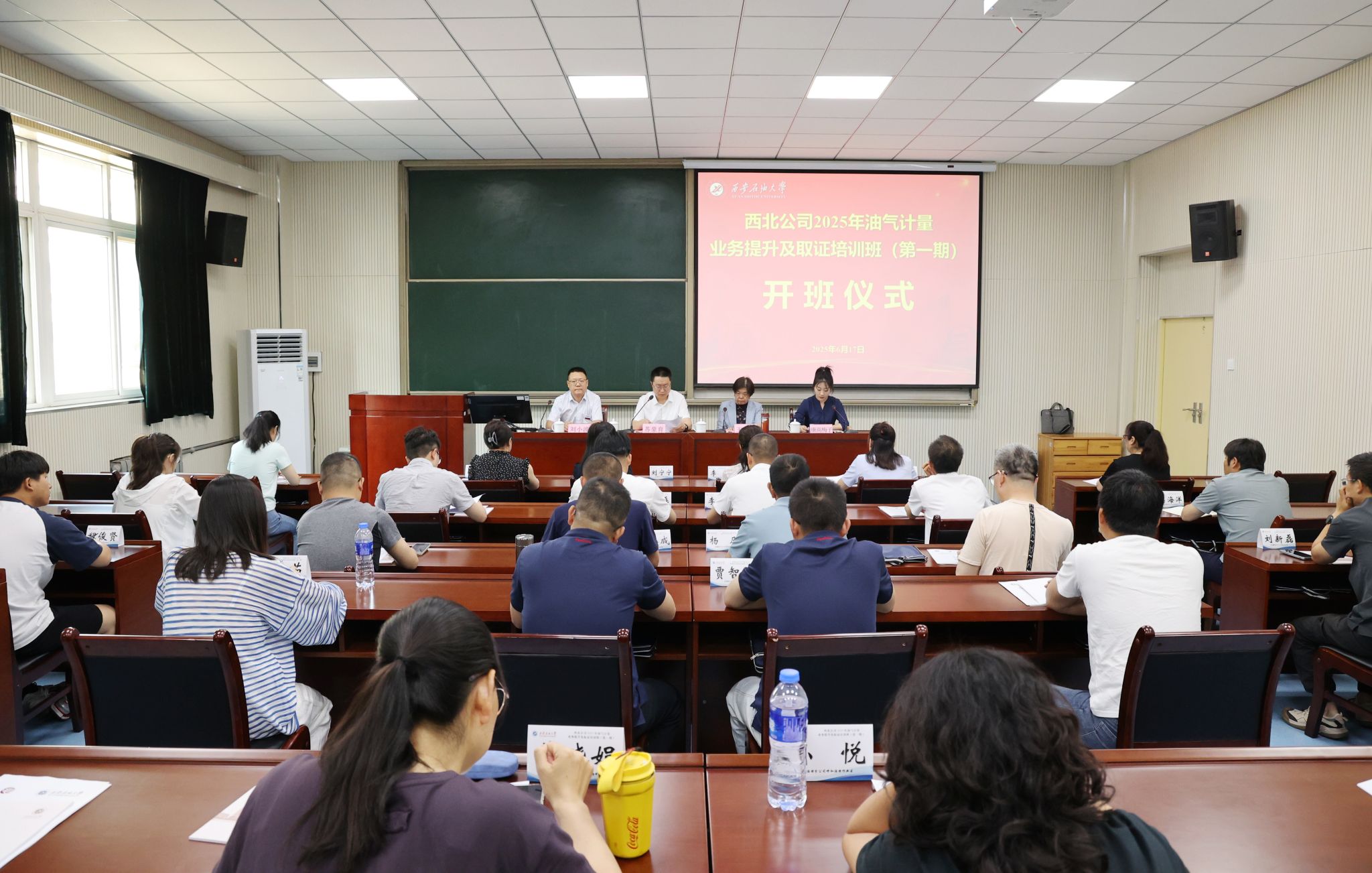 6月17日上午,国家管网集团西北公司2025年油气计量业务提升及取证培训班(第一期)在beat365明德校区顺利开班。国家管网西北公司生产部一级工程师苏豪育,继续教育学院副院长刘小波出席开班仪式。来自国家管网集团西北公司油气计量业务骨干参加仪式。仪式由继续教育学院(培训中心)培训办公室副主任康高梅子主持。