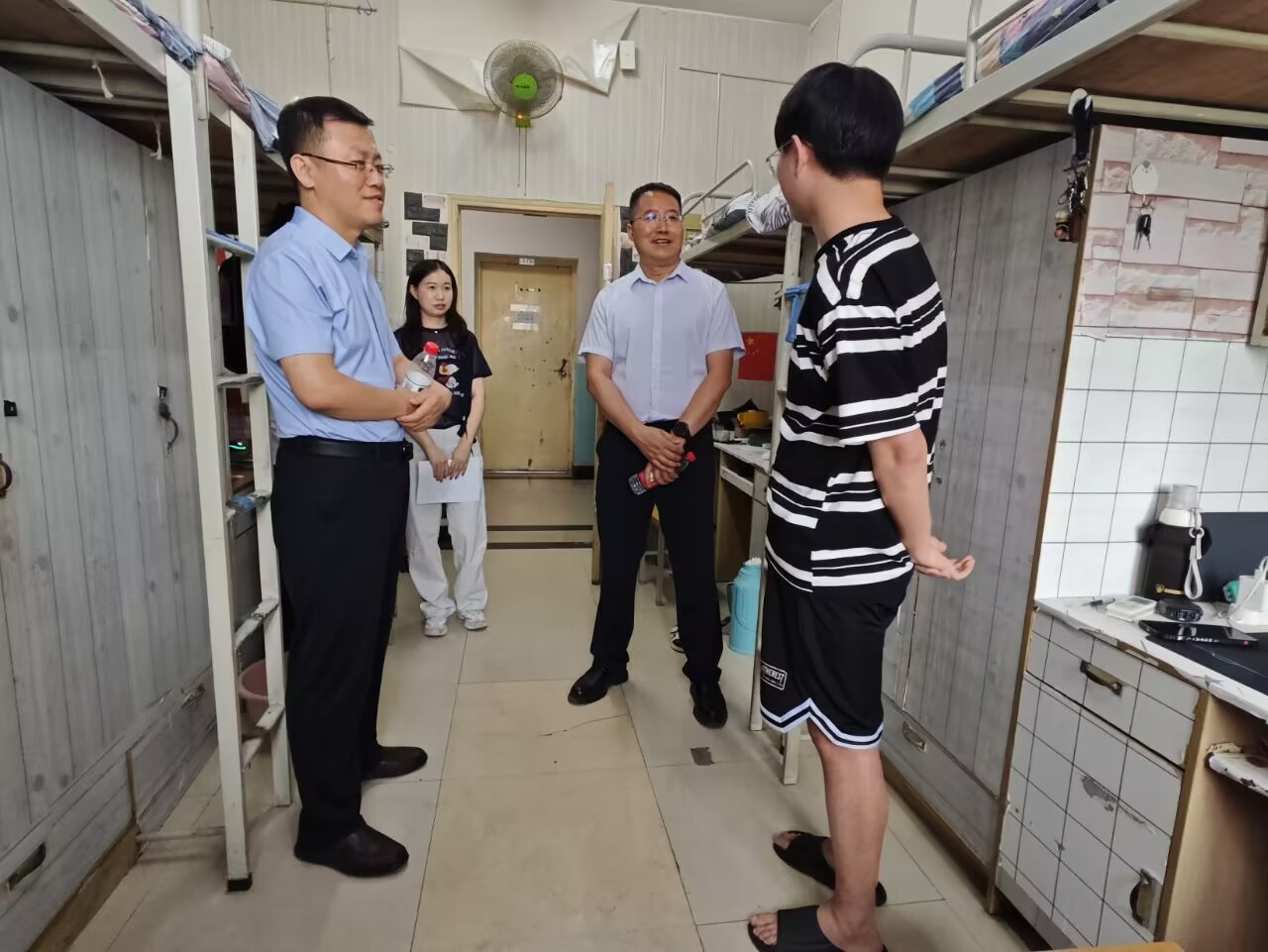 6月17日,理学院党委书记席利哲,院长折延宏,副书记杨富民带领学生工作办公室副主任庞波,毕业班辅导员林晔一起深入毕业生宿舍,开展走访慰问活动,为即将踏上新征程的毕业生们送去学院的关怀与祝福。