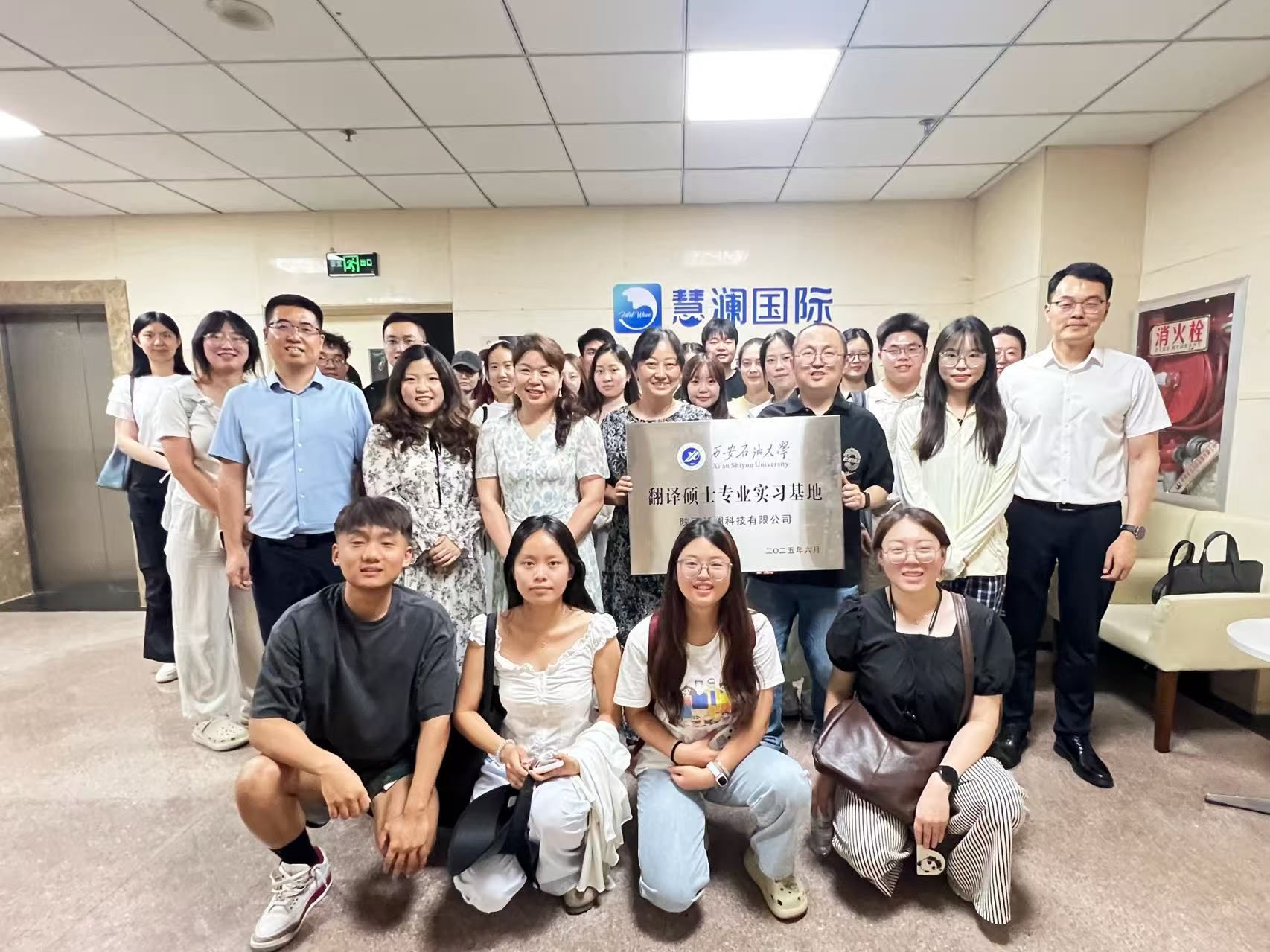 为进一步做好MTI专业学生实习实践工作,6月20日上午,外国语学院副院长邓林带队前往陕西慧澜科技有限公司签订实习实践基地协议,MTI导师、副导师代表及2024级翻译硕士研究生一同前往。