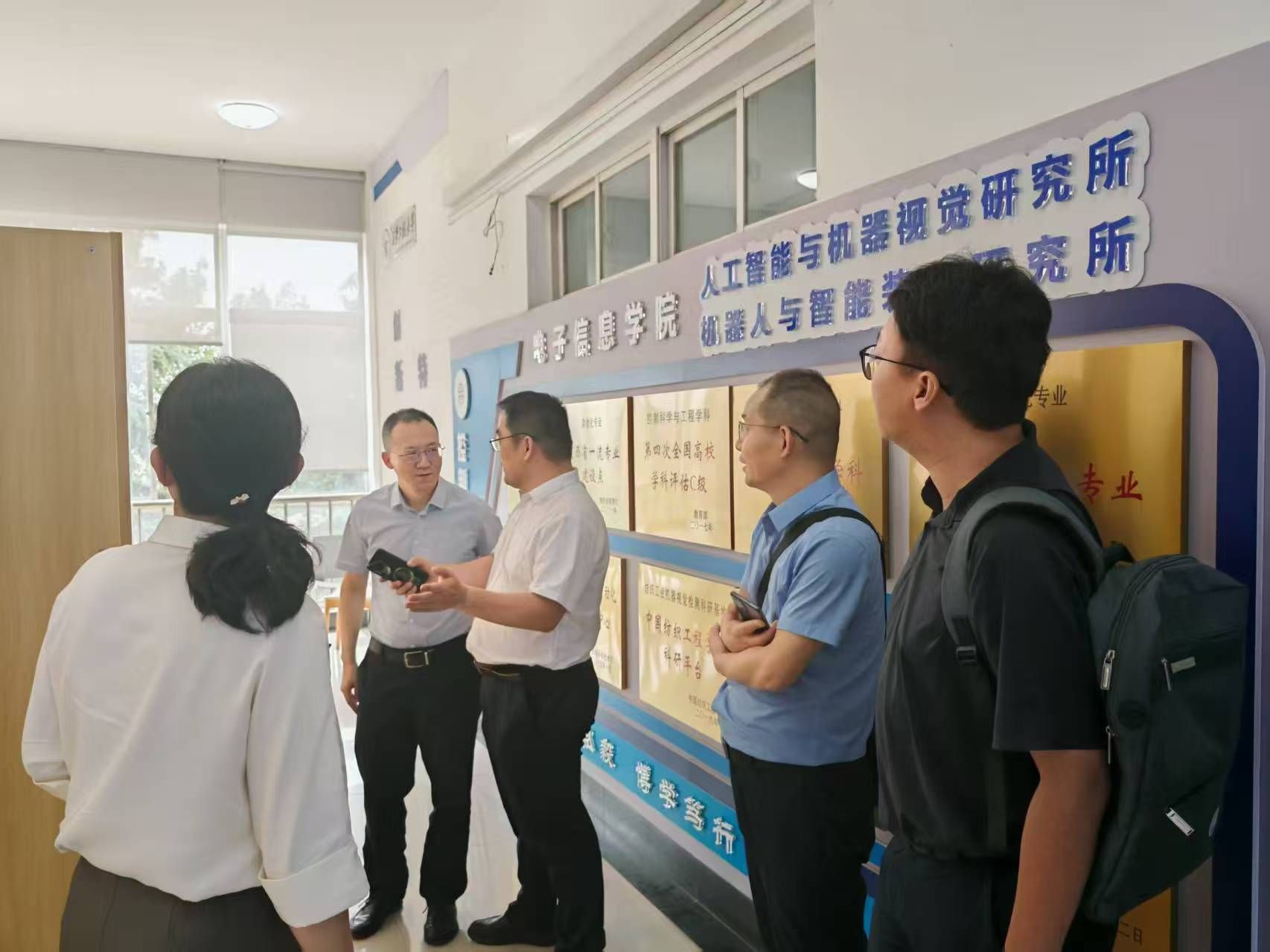 会后,调研组实地走访了电子信息学院的科研实验室、重点科研机构及研究生工作室等,现场观摩了院所制下的科研组织形态。