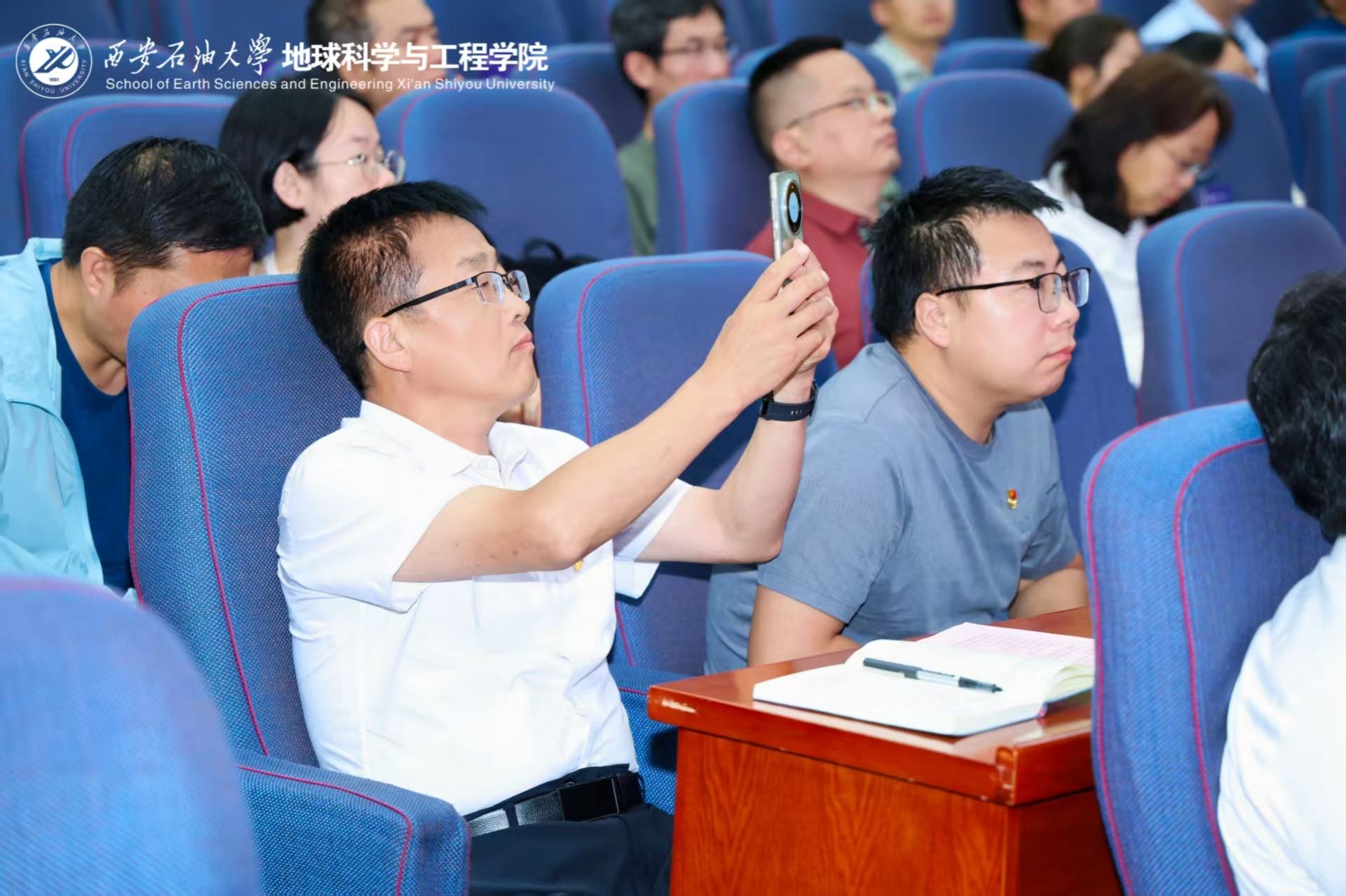 在庆祝中国共产党成立104周年,深入贯彻中央八项规定精神学习教育走深走实和贯彻落实学校“三个年”建设部署之际,6月30日下午,地球科学与工程学院党委在雁塔校区学术报告厅举行“智慧教育 你我同行”同上一堂思政课暨深入贯彻中央八项规定精神学习教育主题党日活动。校党委副书记、校长王进富出席活动并讲授思政课暨学习教育专题党课。学院党政领导班子成员,党委委员、理论学习中心组成员,各系党支部书记、主任,师生员工及党员代表等200余人参加。活动由学院党委书记高黎主持。