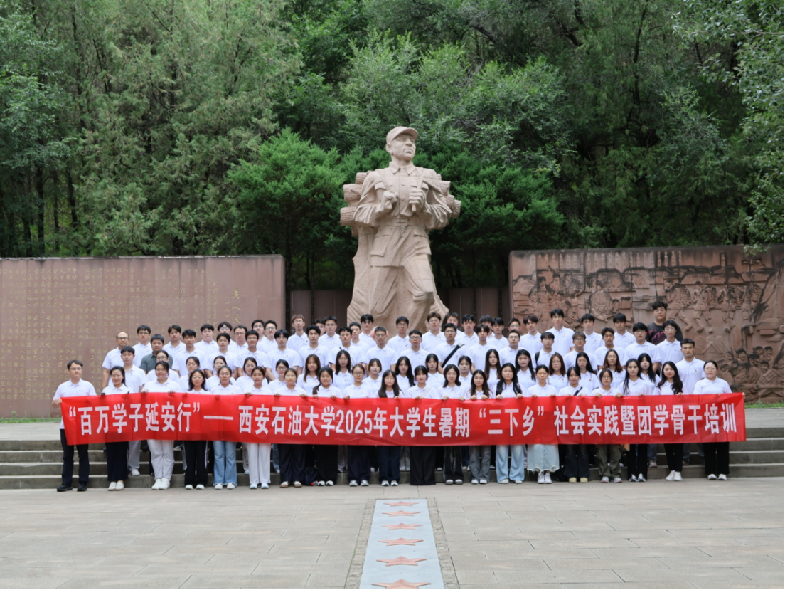为深入学习贯彻习近平新时代中国特色社会主义思想,贯彻落实党的二十大精神和习近平总书记关于“大思政课”、革命文物工作重要指示批示精神,进一步落实陕西省委教育工委“百万学子延安行”实践活动工作要求,传承和弘扬延安精神,推动红色文化资源深度融入“大思政课”建设和立德树人全过程。7月5日—7日,beat365赴延安开展“百万学子延安行”—beat365官方网站2025年大学生暑期“三下乡”社会实践暨团学骨干培训,本次实践活动将“大思政课”与beat365石油石化特色相结合,通过实地参观、现场教学、专题讲解、沉浸式感悟等方式,引领beat365学子在革命圣地延安,感悟信仰之源,在广阔基层天地,磨砺实干之能,在团学骨干岗位上,锤炼引领之功,追寻先辈足迹,体悟伟大建党精神和延安精神,汲取奋进力量,在实践中体会党的理论创新成果的真理力量和实践伟力。