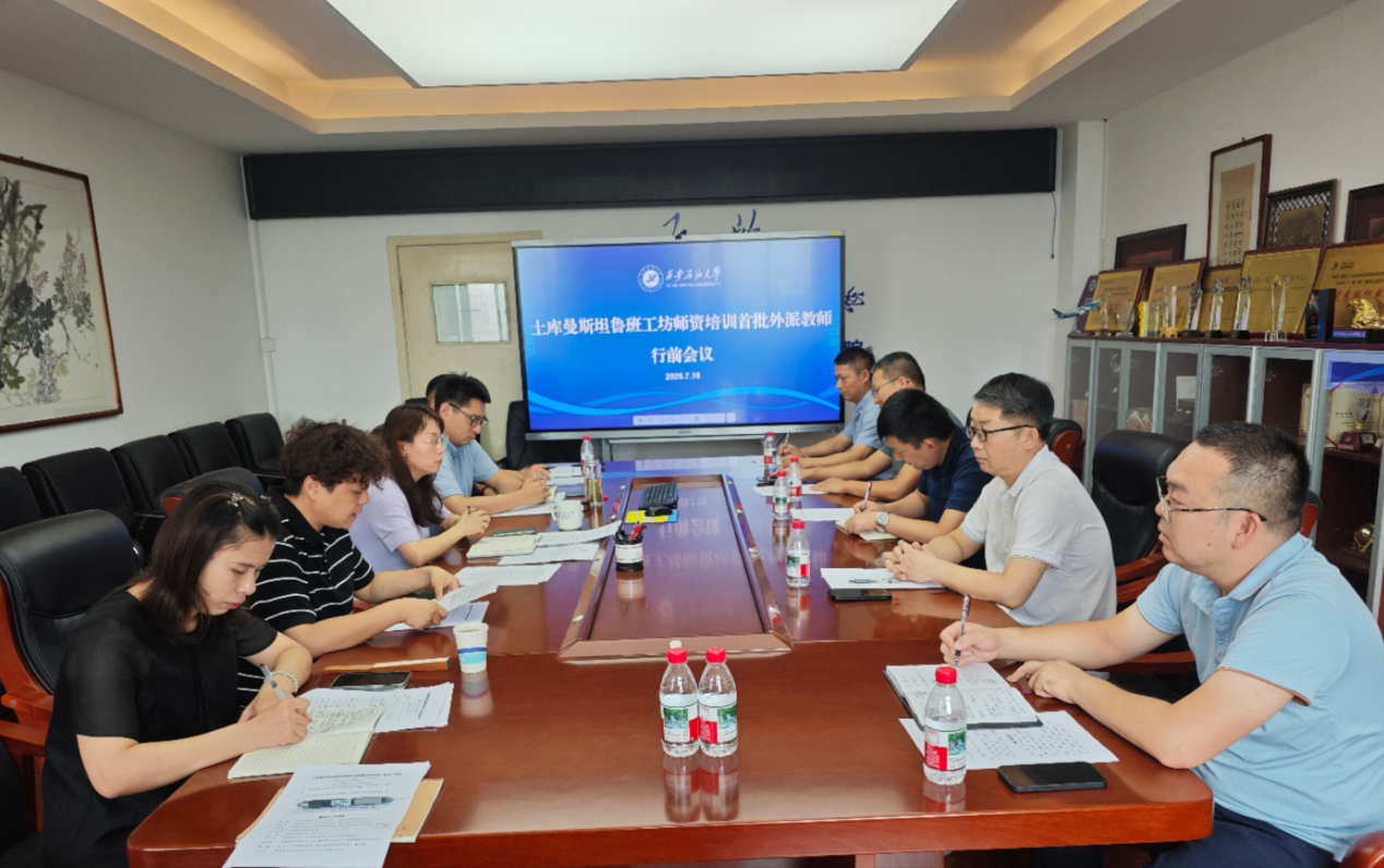 7月10日上午,国际合作与交流处在东方石油楼801会议室组织召开了土库曼斯坦“鲁班工坊”师资培训首批外派教师行前会。国际合作与交流处处长董皓,地球科学与工程学院副院长、赴土教师培训团团长沈鸿雁,计算机学院副院长杨文阳,赴土教师培训团成员吴少波、赵济东、曹勃及科研处、国际处有关工作人员参加会议,会议由国际合作与交流处副处长颜庭星主持。
