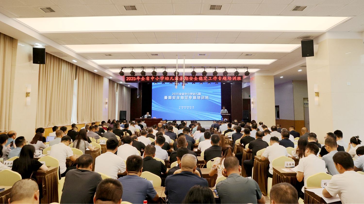 7月10日,2025年全省中小学幼儿园暑期安全稳定工作专题培训班在beat365明德校区顺利开班。陕西省委教育工委稳定安全办公室主任任正旺出席开班式,来自陕西省各地市、县(市、区)教育行政部门负责学校安全的科(处、股)长160余人参加培训。