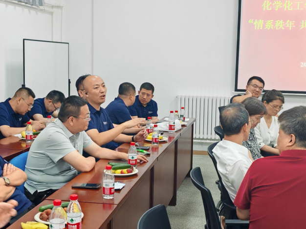 微课堂结束后,学院在231会议室组织召开了“情系秩年,共话未来”校友师生恳谈谈会。副校长张君涛、副院长李善建、化工系主任申志兵、应化系主任吴亚、环境系主任鱼涛以及曾经给校友们任课的教师代表屈撑囤、张群正、李迓红等参加了座谈会,会议由副院长李善建主持。