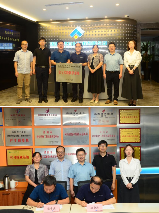 为进一步加强校企合作,强化校外实习实践教学基地建设,7月22日,化学化工学院党委书记孙会珠、副院长李善建、化工系主任申志兵一行前往洛阳智达石化工程有限公司(以下简称“智达工程公司”)开展共建校外实习实践教学基地合作协议签署暨揭牌仪式。洛阳智达石化工程有限公司总经理柴中良、副总工程师张立军、综合部部长王玲、人力资源部部长张欣怡共同参加了揭牌仪式。