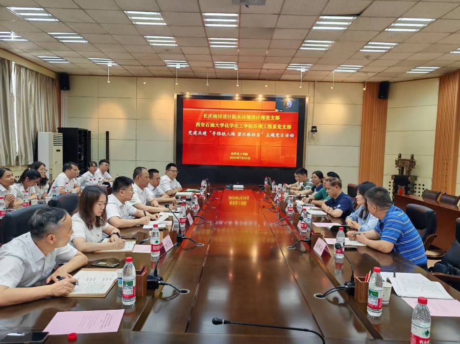 下午,在会议中心第二会议室,召开了党建共建座谈会,双方以主题党日活动的形式展开研讨。会上,化学工程系教工党支部书记、全国模范教师黄风林,结合所在支部党建双创建设情况,线上通过“党建聚民心、党建汇众力、党建促发展”三个角度分享了化工系教工党支部在学科建设、人才培养、专业认证、队伍建设、产教融合、科技扶贫等方面的工作,交流了抓党建促工作的思考与实践。环境工程系教工党支部书记屈撑囤介绍了支部的基本情况,尤其是支部党员在教学、科研、油田服务等方面取得的成绩,以及环境支部在油田含油污泥处理技术和油气田污染控制等方面的技术应用成果,希望通过校企合作和党建共建,促进产教融合发展,提供更多的合作空间,共同为油气田环境保护做出贡献。化学化工学院党委副书记乔晓介绍了学院人才培养情况,以及学院在学生培养过程中融入了铁人精神的内涵教育,希望在实习实践、学生就业等方面能与企业有更进一步的合作。