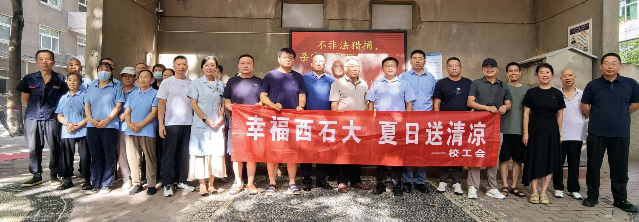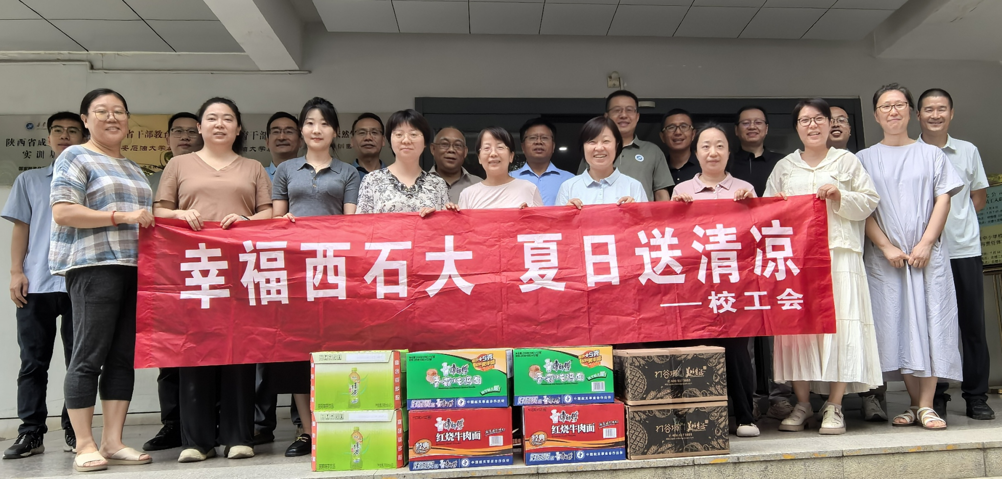 为深入贯彻落实beat365第三次党代会精神,切实将关爱一线教职工行动落到实处,7月24日,副校长张骁勇带队开展2025年暑期“幸福西石大・夏日送清凉”慰问活动,看望高温下依然坚守岗位,保障校园有序运转的一线工作人员,为他们送去防暑降温慰问品,传递学校党政的深切关怀。校工会陪同慰问。