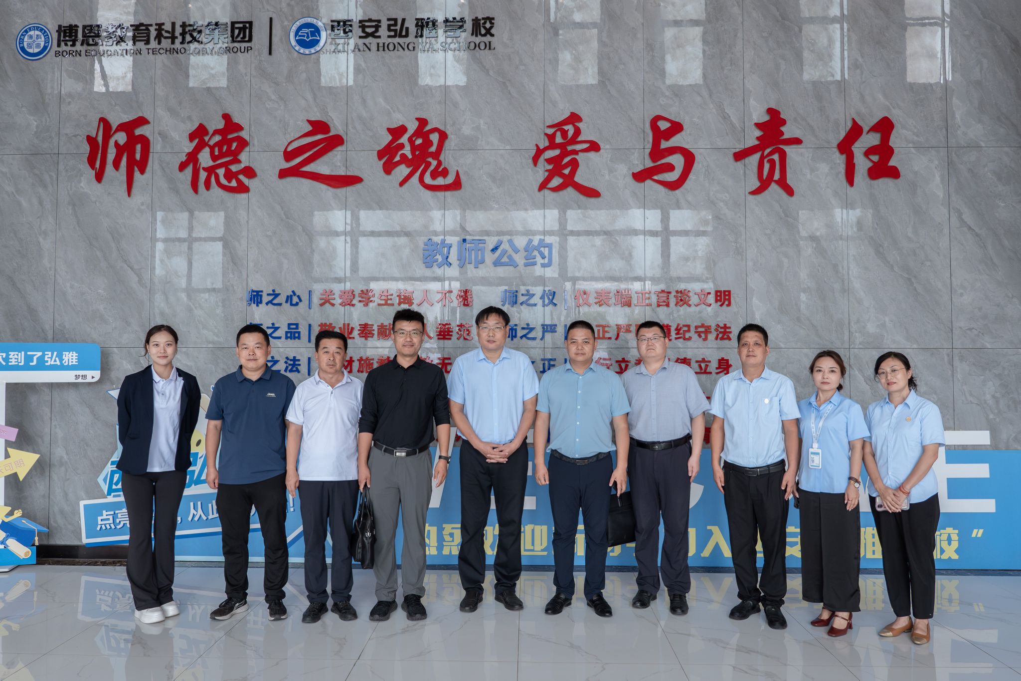 活动期间,赵纪飞一行在肖永定陪同下,实地参观了陕西博恩教育科技集团西安弘雅学校秦汉校区的校园环境、教学设施、电商产业基地、学生餐厅和宿舍等。