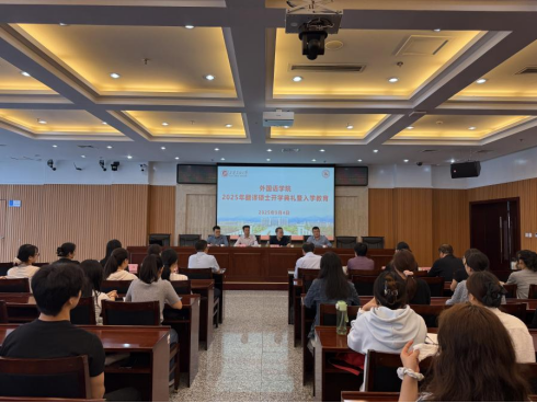 9月4日下午,外国语学院2025级翻译硕士研究生开学典礼暨入学专业教育在鄠邑校区图书馆第一会议室举行。学院党委书记张建高、副书记邱岭、副院长陈武、邓林、研究生导师以及25级翻译硕士研究生参加会议。会议由院党委副书记邱岭主持。