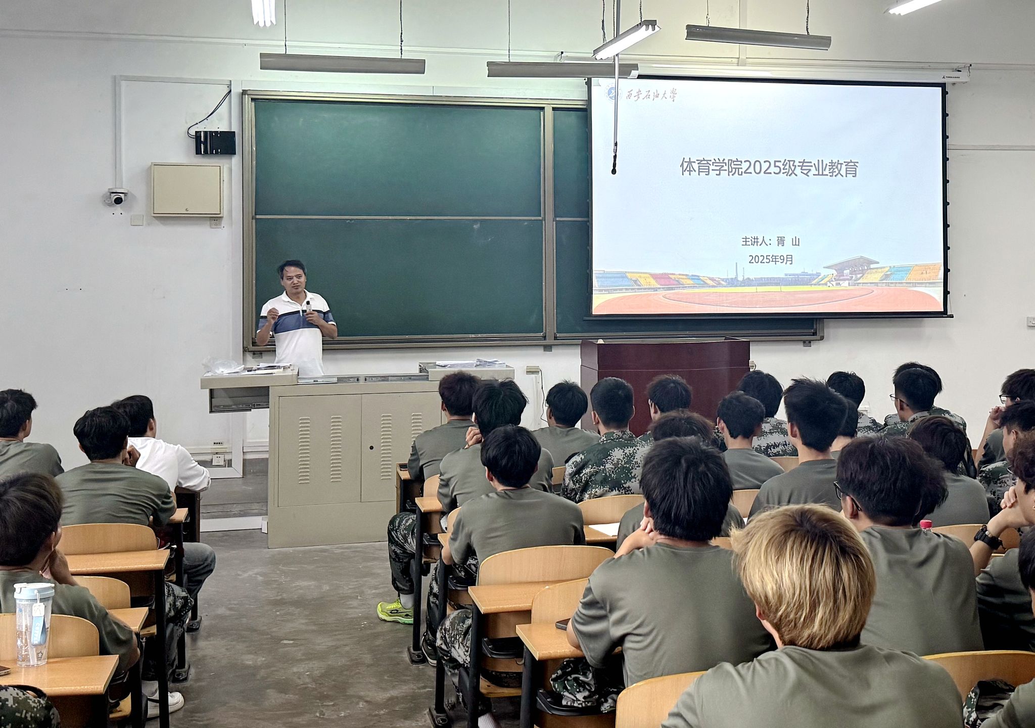 刘小波代表学院向新生启航新征途,加入体育学院大家庭表示热烈欢迎和诚挚祝福!并向新生提出三点希望:一是要志存高远,勇担时代使命。他说,体育强国建设是民族复兴的重要篇章,青年学子要将个人理想融入国家发展大局,以“全民健身”“乡村振兴”等国家战略为指引,树立远大志向,成为推动健康中国建设的生力军。二是要潜心学习,锤炼过硬本领。刘小波指出,社会体育指导与管理专业需立足社会需求,既要夯实运动解剖学、健身理论与指导等核心课程基础,又要积极参与社区服务、赛事策划等实践项目,考取社会体育指导员等职业资格证书,将理论转化为服务群众的实际能力。三是要开拓创新,突破成长边界。他鼓励新生要提振自信,探索运动康复、智慧体育等新兴领域,培养跨界思维,在创新创业中展现体育人的智慧与担当,为体育产业高质量发展注入新动能。