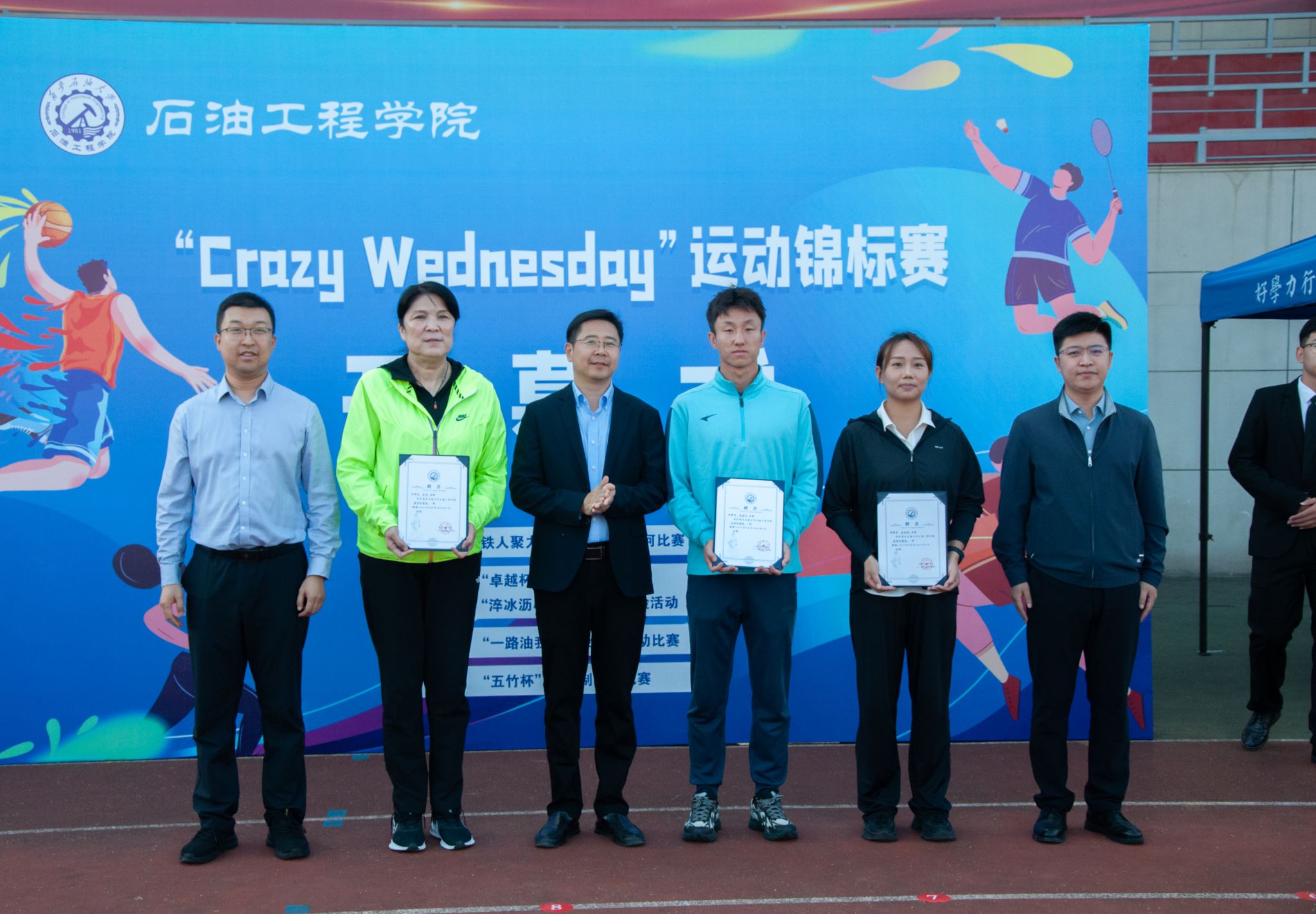 秋色浩无际,风露洗晴空。9月24日,石油工程学院在鄠邑校区田径场举办“CRAZY WEDNESDAY”(疯狂星期三)运动锦标赛开幕式。副校长赵健,党委办公室(校长办公室)、党委学生工作部、石油工程学院、体育学院负责同志,受聘教练员、师生代表300余人参加开幕式。