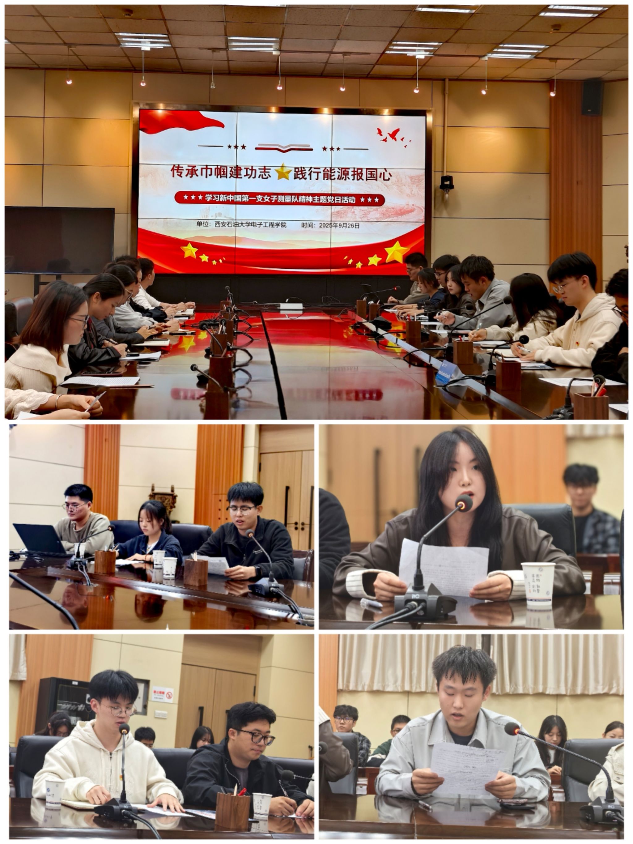 潘娜结合在油田的成长经历与观演感悟指出,新中国第一支女子测量队以行动诠释了初心使命,历史的接力棒已传至当代青年手中。站在新的历史起点,电子工程领域的青年学子尤须从中汲取精神力量,将“测量队精神”切实转化为科研报国的行动。她希望广大党员同志,一要学习她们“祖国需要就是最高追求”的家国情怀,坚定理想信念,把准科研方向。二要学习她们“不畏艰险、勇攀高峰”的奋斗精神,刻苦钻研本领,敢于挑战尖端。三要学习她们“严谨细致、精益求精”的科学态度,锤炼扎实学风,追求卓越成果。四要学习她们“团结协作、无私奉献”的集体主义精神,凝聚团队力量,服务集体发展。