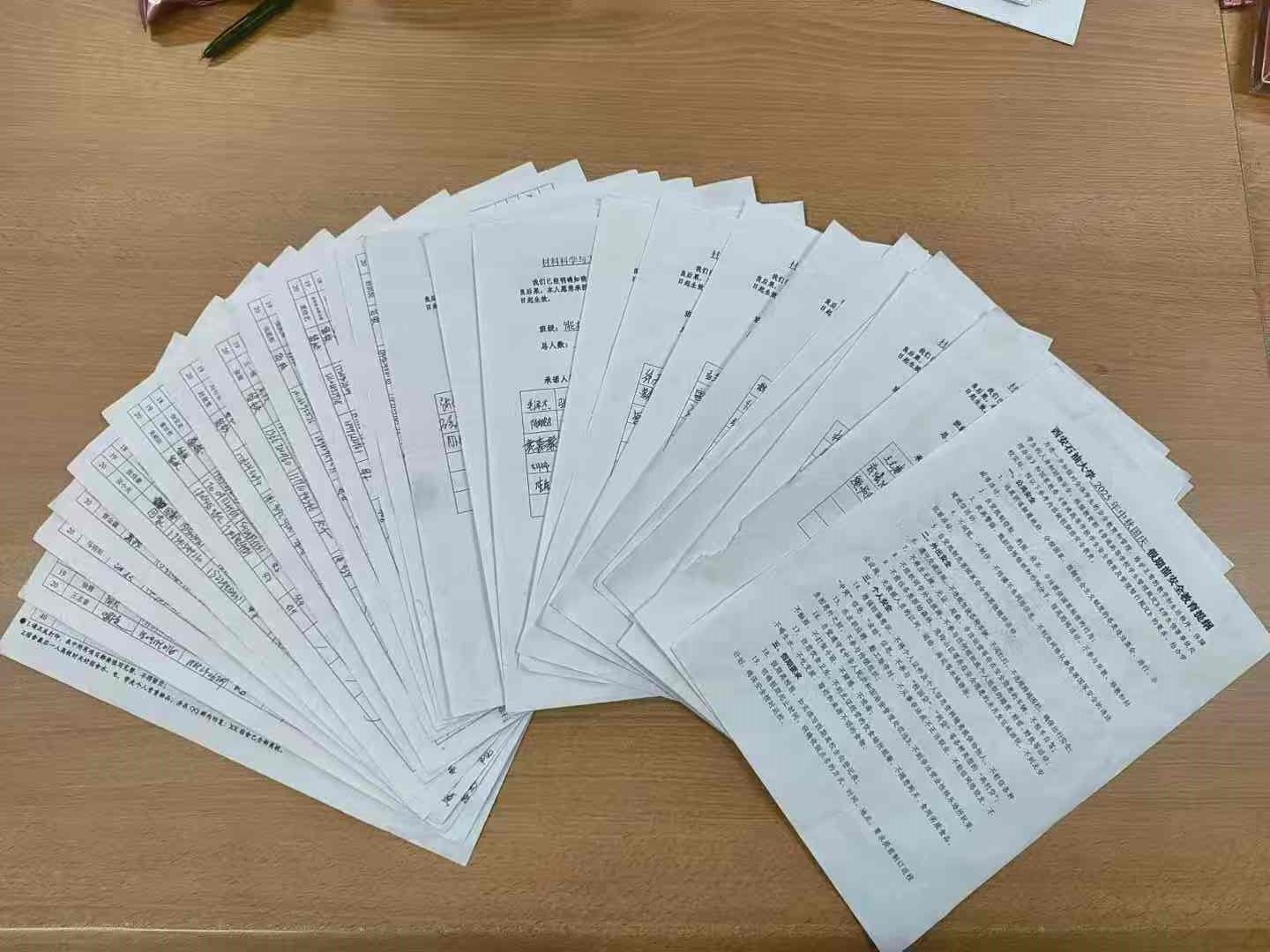 会后,各年级组织全体同学签订了《材料科学与工程学院中秋国庆假期安全承诺书》,填写了《2025年中秋国庆假期去向登记表》。