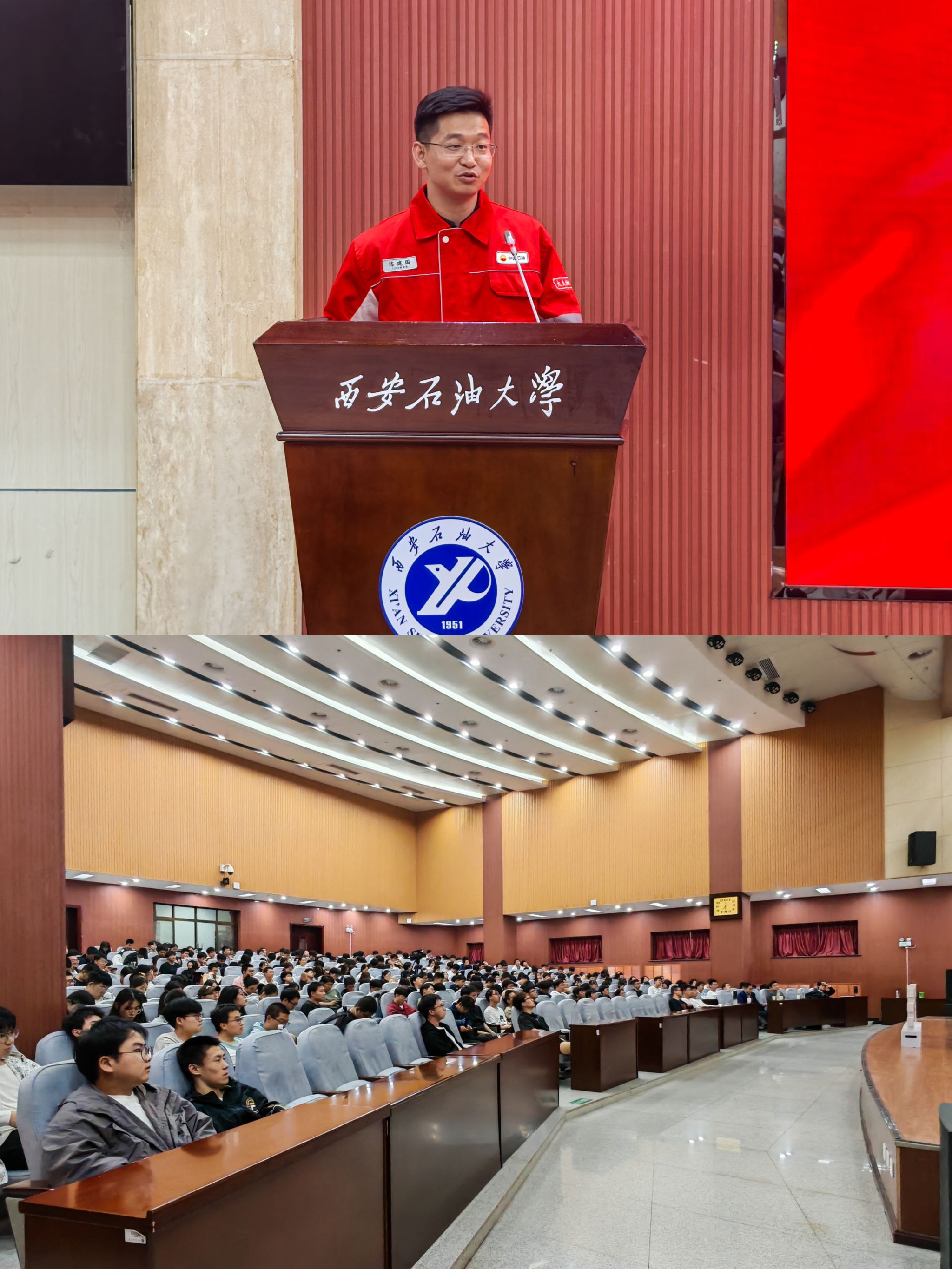 为深化我院与大庆钻探“双子星”钢铁1205、尖刀1202钻井队党建共建合作实践,搭建起校企协同育人新平台,让学生深刻感悟“石油精神办学、铁人精神育人”的深厚内涵, 9月26日,时值大庆油田发现60周年,中国石油成立75周年之际,我院特邀请大庆钻探工程有限公司钻井二公司1202钻井队队长陈建国为beat365师生作“踏着铁人脚步走 我为祖国献石油”精彩报告,并聘任陈建国为石工(卓越)2501班企业兼职班主任。副校长赵健,党委办公室(校长办公室)、石油工程学院负责人出席聘任仪式。