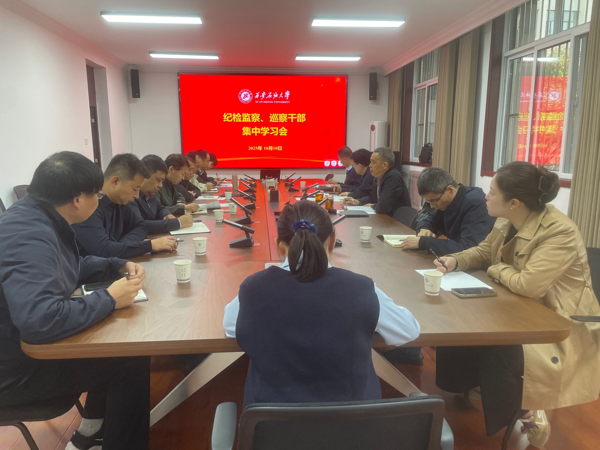 10月10日上午,纪检巡察干部2025年第17次集中学习会在鄠邑校区办公楼第四会议室召开。纪检监察机构、党委巡察工作办公室干部,二级单位党组织纪检委员参加会议。会议由校党委副书记、纪委书记、监察专员王辉强主持。