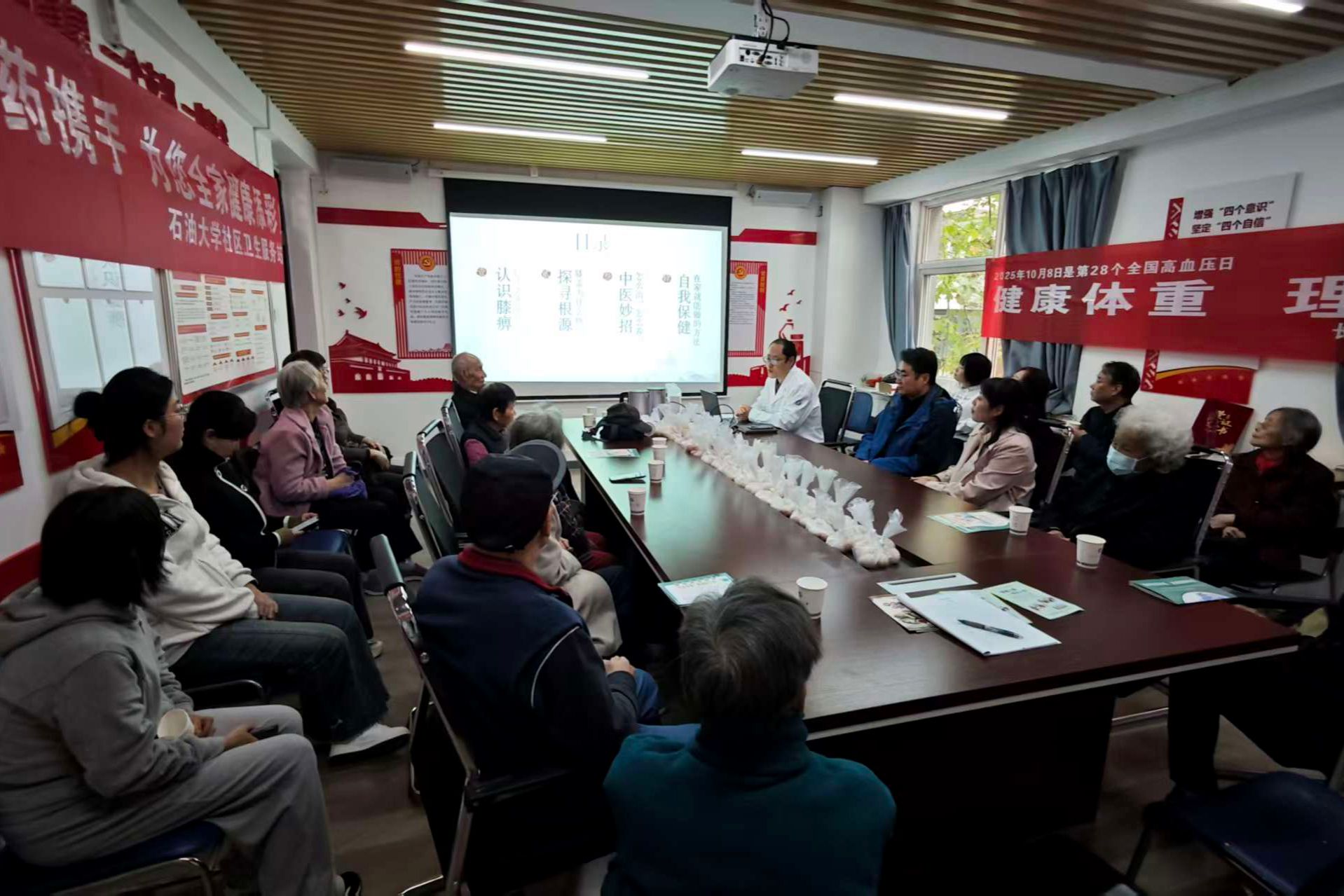 整场讲座兼具现代医学的严谨指导与传统中医的养生智慧,内容干货满满、实用性极强,赢得在场听众的一致认可。活动现场氛围热烈,老同志们专注聆听、不时点头,遇到重点内容还拿出手机拍照记录,互动环节更是积极提问,与医生深入交流健康困惑。讲座结束后,校医院还贴心准备了定制小礼品,让温暖关怀直抵人心,进一步提升了老同志们的参与感与幸福感。随后,石油大学社区卫生服务站负责人詹华斌向大家介绍了站点的公共服务项目,重点提及近期新增的理疗项目与检验检查服务,并特别说明可为行动不便的老人提供“定制化上门医疗服务”,贴心举措获老同志们纷纷点赞。