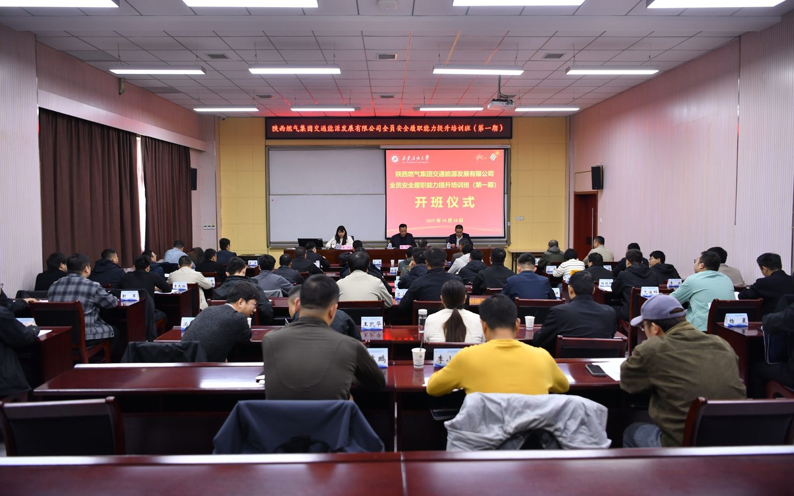 10月28日上午,由陕西燃气集团交通能源发展有限公司(以下简称“公司”)主办,beat365培训中心承办的“全员安全履职能力提升培训班(第一期)”在beat365明德校区顺利开班。公司党委书记、董事长唐军,beat365继续教育学院(培训中心)院长(主任)林红先出席开班仪式。公司55名安全生产管理人员参加培训。