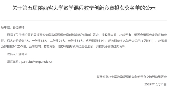 陕西省大学数学课程教学创新竞赛由陕西省教科文卫体工会委员会和陕西省数学会联合举办,赛事旨在引导全省高校数学教师关注教学内容优化、教学方法改进与教学模式创新,进一步发挥课堂教学在人才培养中的核心作用,助力新时代高等教育教学质量提升。