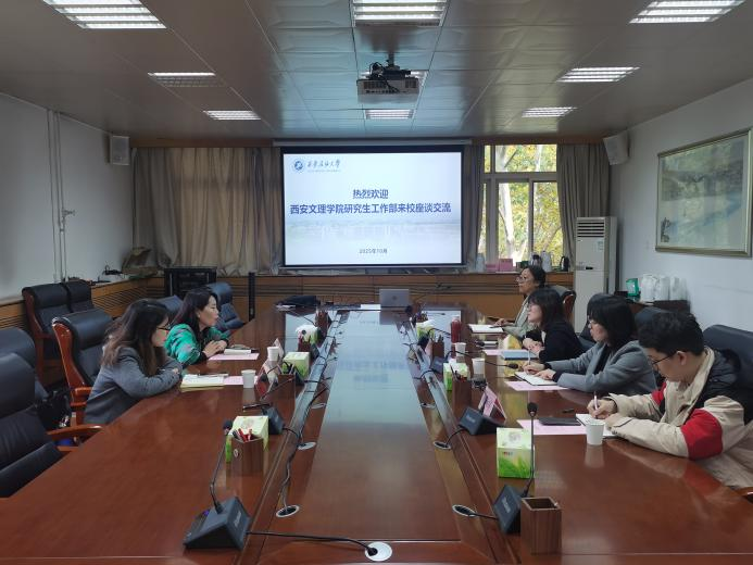 10月31日上午,西安文理学院研究生工作部负责人李晶副院长一行来beat365研究生工作部座谈交流,围绕研究生思想政治教育、创新能力发展、管理服务体系等议题进行深入探讨。研究生工作部部长田虹霞及研工部成员参加座谈会。
