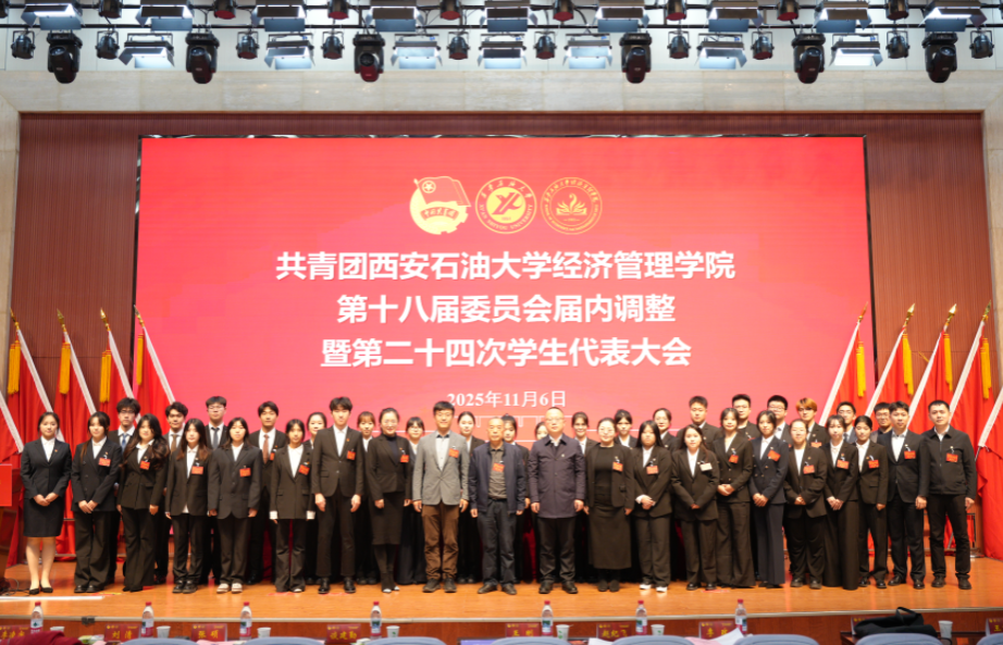 2025年11月6日,共青团beat365官方网站经济管理学院第十八届委员会届内调整暨第二十四次学生代表大会在鄠邑校区弘石学术报告厅顺利召开。学院党委书记谈建勤、校团委书记王刚、经济管理学院党委副书记赵纪飞、经济管理学院团委书记张硕、学院各年级团总支书记、辅导员以及各兄弟院系学生会主席团代表、学院学生代表200余人参加了此次会议。