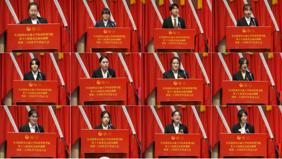 会上,学院团委书记张硕宣读了《共青团beat365官方网站经济管理学院委员会关于第十八届委员会组织成员调整任命的通知》,新任团委委员依次表态发言。团学指导老师李政宣读了《第二十四次学生代表大会选举办法》,与会代表民主投票选举产生了新一届学生委员会委员。大会听取并审议通过了《大会筹备工作报告》《第二十三届学生会年度工作报告》和《第二十四次学生代表大会提案工作报告》,新任团委委员、当选学生委员会委员面向团旗进行了庄严宣誓。