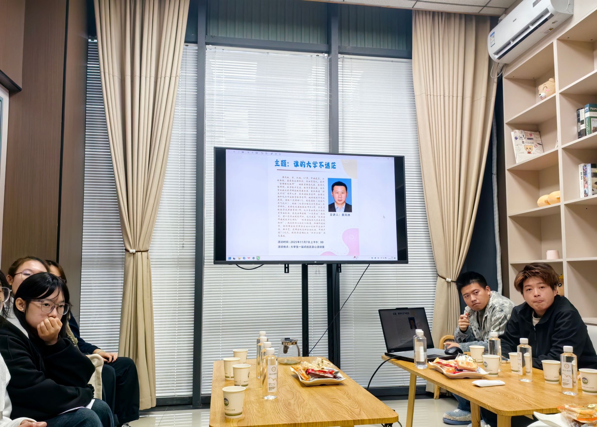 为持续搭建师生间常态化交流平台,帮助学生科学合理规划大学生活,持续推进学风建设工作,11月7日上午,学院在“一站式”社区启心活动室举行第十七期“师”“化”实说活动。本期邀请“全国模范教师”、二级教授黄风林担任主讲,围绕“谁的大学不迷茫”这一主题,与同学们展开了一场心灵的对话。活动由学院党委副书记乔晓主持,2025级应用化学专业学生代表参加。
