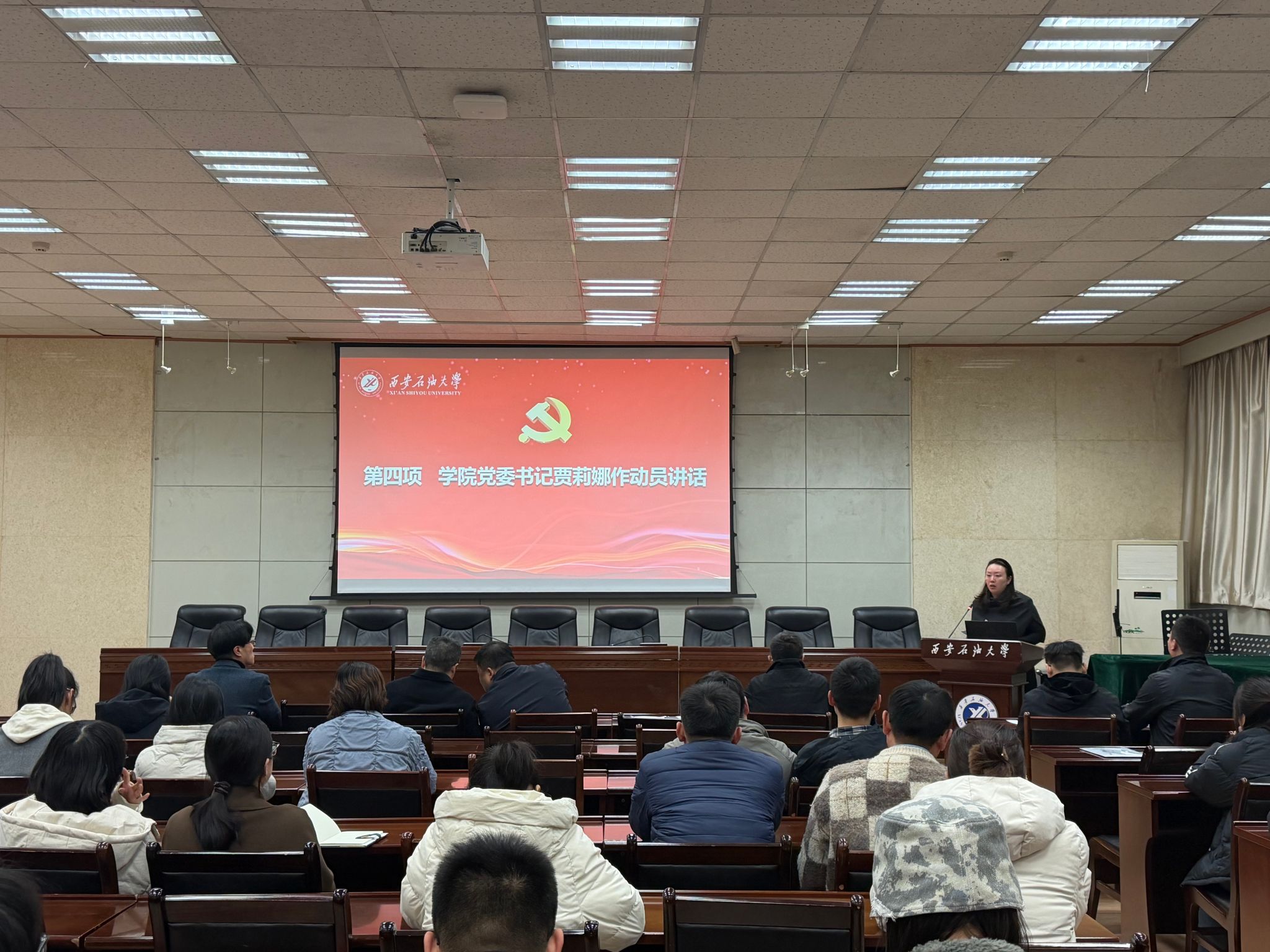 会上,学院党委书记贾莉娜作动员讲话。她指出,党对教育工作的全面领导是办好教育的根本保证,必须坚定不移地贯彻落实党管办学方向、党管干部、党管人才等各项要求。党管一切,不是束缚手脚,而是要通过党的领导,凝聚各方力量,为学院的发展提供坚强的政治保障和组织保障。她对本次学习班提出三点目标:一是通过学习,深入学习贯彻党章党规党纪,明确自身的权利和义务,明白党纪国法的红线不可触碰;二是通过学习,立规矩、明纪律,让党的纪律和规矩成为全体师生的行为准则;三是通过学习,以党建活动的形式,搭建师生交流的平台,倾听师生的心声,解决师生的实际困难。