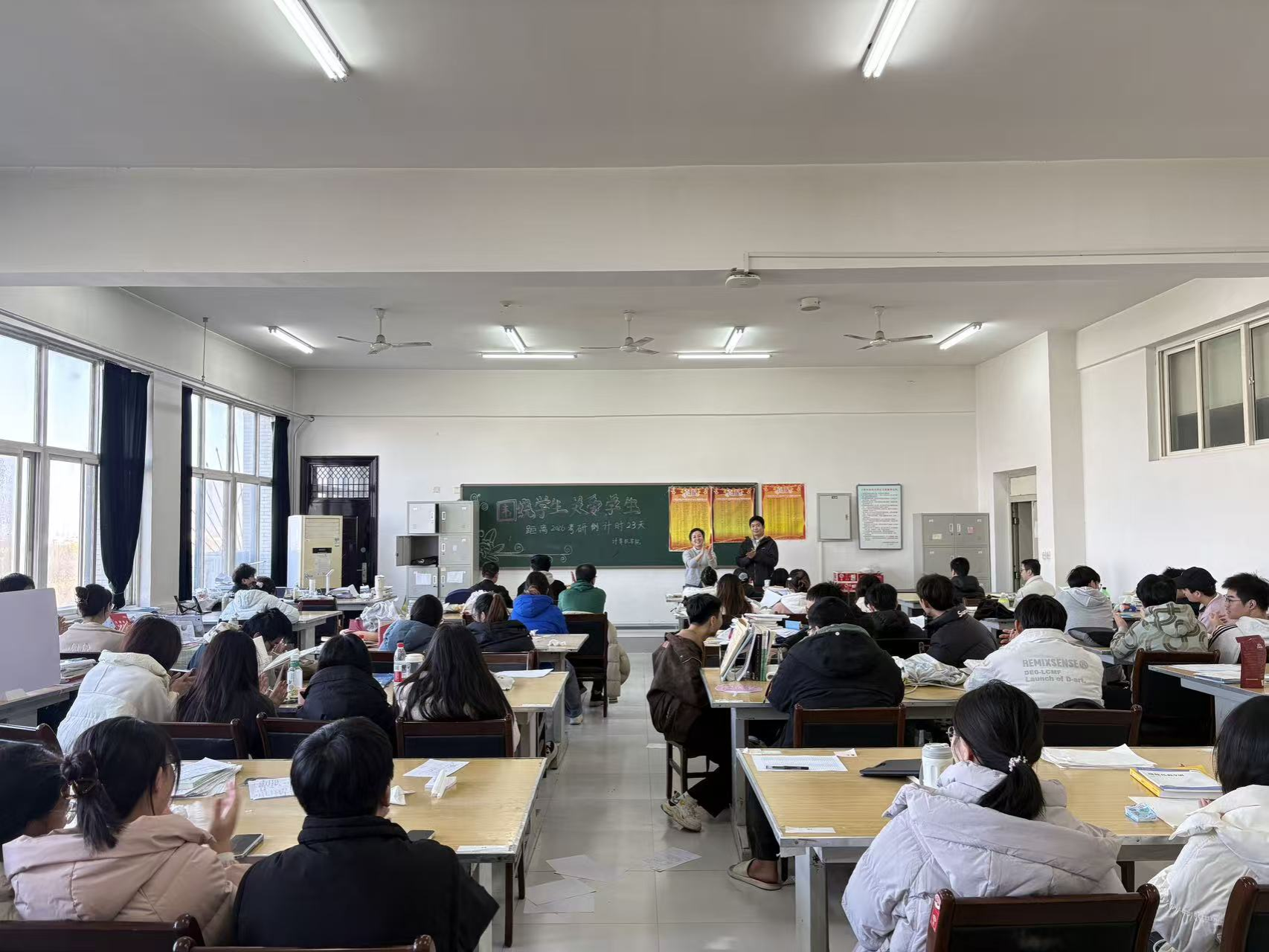 随后,王莹副书记作动员讲话,向同学们提出三点殷切嘱托:一是以“坚持”锚定方向,跑出冲刺“加速度”王莹鼓励同学们:备考的疲惫与焦虑是常态,但每一份熬夜整理的笔记、每一次反复推演的习题,都是通往成功的阶梯。学院会始终做大家最坚实的后盾,无论是复习资料的协调还是心理状态的调适,老师们都会第一时间提供支持。二以“节律”守护状态,筑牢备考“健康线”她特别提醒同学们:冲刺阶段切勿陷入“疲劳战”,要保持规律作息,保证每日7小时睡眠;饮食以清淡营养为主,避免因身体不适影响复习节奏。三以“稳心”应对挑战,练就应考“平常心”。王莹建议同学们:淡化“结果焦虑”,专注当下的知识巩固;遇到情绪波动时,可通过与辅导员谈心、与研友交流等方式疏解,以从容、自信的心态迎接考试。