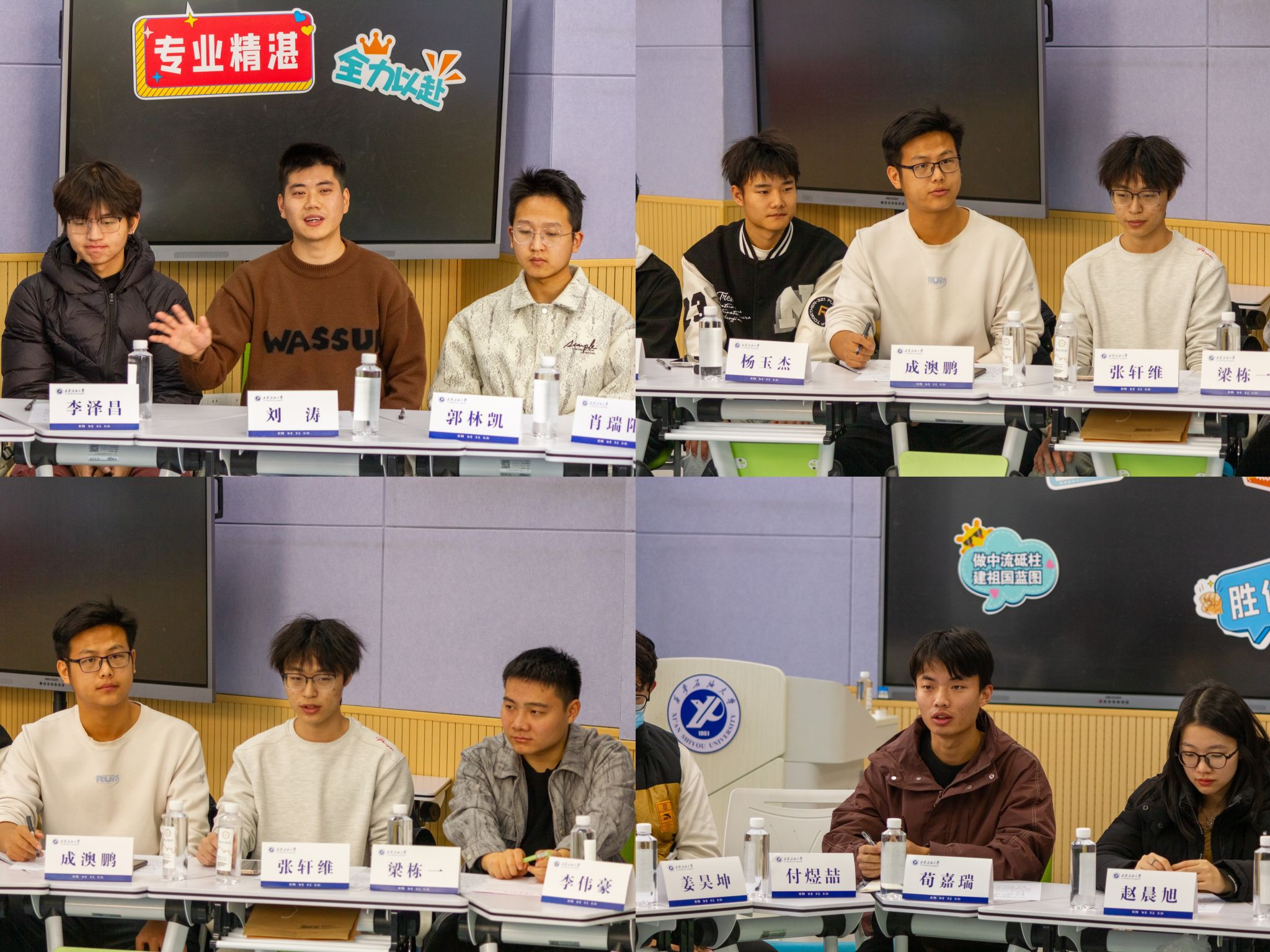 石工2208班班长刘涛聚焦提升班级凝聚力的思考,分享了通过组织集体活动、关注同学需求等方式增强班级向心力的实践思路;石工2301班班长成澳鹏以班级建设中班长的角色定位为主题,剖析了班长在班级管理中作为组织者、服务者和沟通者的多重身份;石工2405班班长张轩维围绕在班级管理中调动班级成员积极性的小妙招,从激励机制、分工协作等角度给出了具体可行的方法;石工2407班班长荀嘉瑞畅谈班长经历对个人成长影响的感受,讲述了担任班长过程中在沟通能力、责任意识等方面的收获与成长。