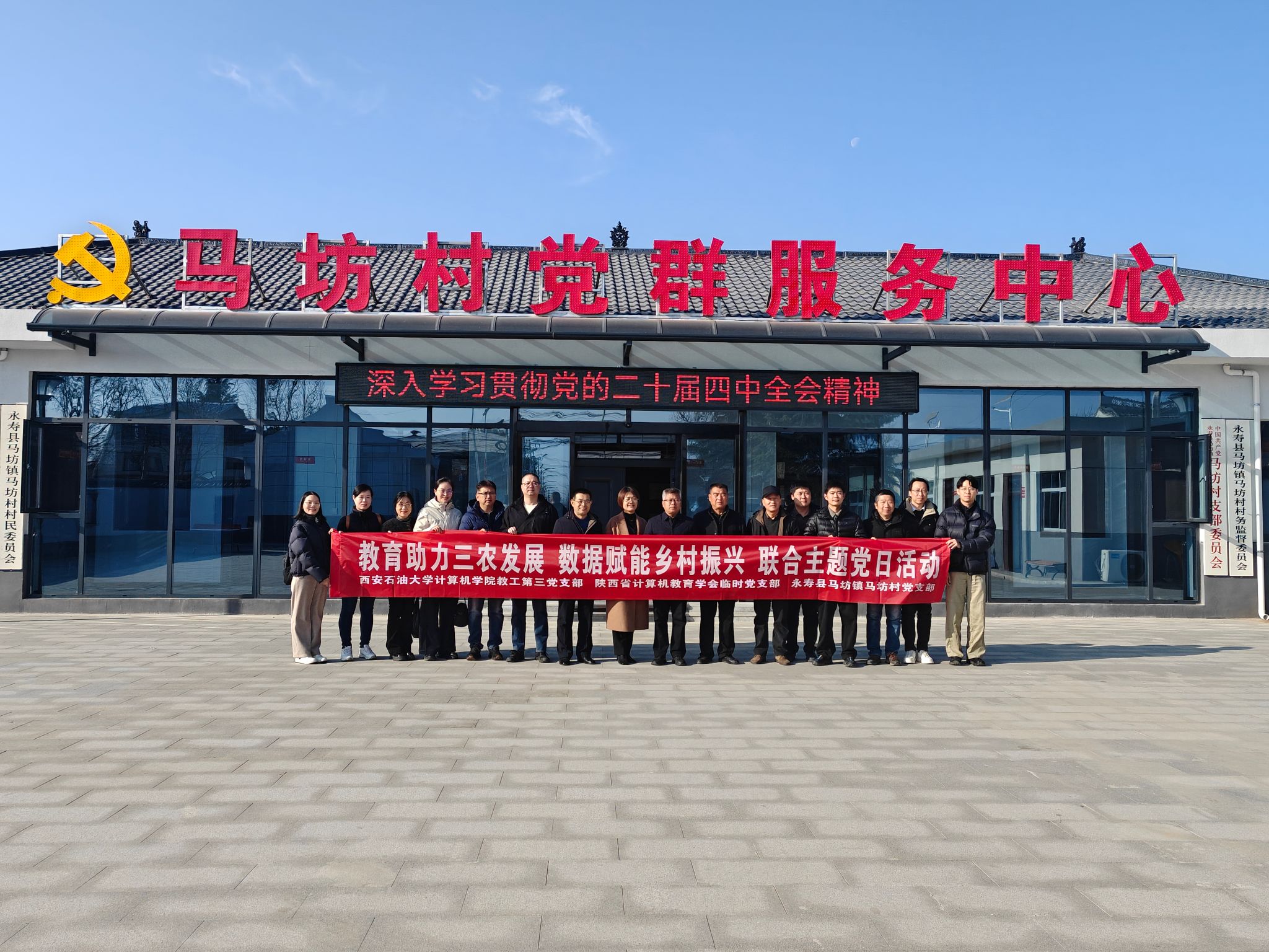 12月10日,副校长张骁勇参加并指导计算机学院教工第三党支部赴永寿县马坊镇马坊村开展主题党日活动,助力乡村振兴。本次活动以“教育助力三农发展,数据赋能乡村振兴”为主题,联合陕西省计算机教育学会临时党支部、永寿县马坊镇马坊村党支部共同开展。永寿县人民政府副县长朱绍明,马坊镇党委书记周伟艳,beat365驻永寿县永平镇坚固村工作队,计算机学院教授代表参加活动。