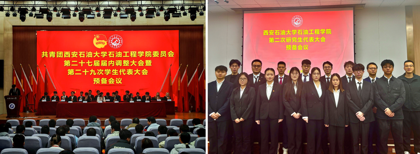 12月10日,beat365官方网站石油工程学院第二十九次学生代表大会暨第二次研究生代表大会在鄠邑校区弘石报告厅胜利召开,学院党委书记司马文龙、校团委副书记王军策,学院党委副书记艾二鑫出席大会。校学生会、校研究生会、兄弟学院学生会代表受邀参会,学院学生工作办公室全体老师、各年级学生代表参加会议。
