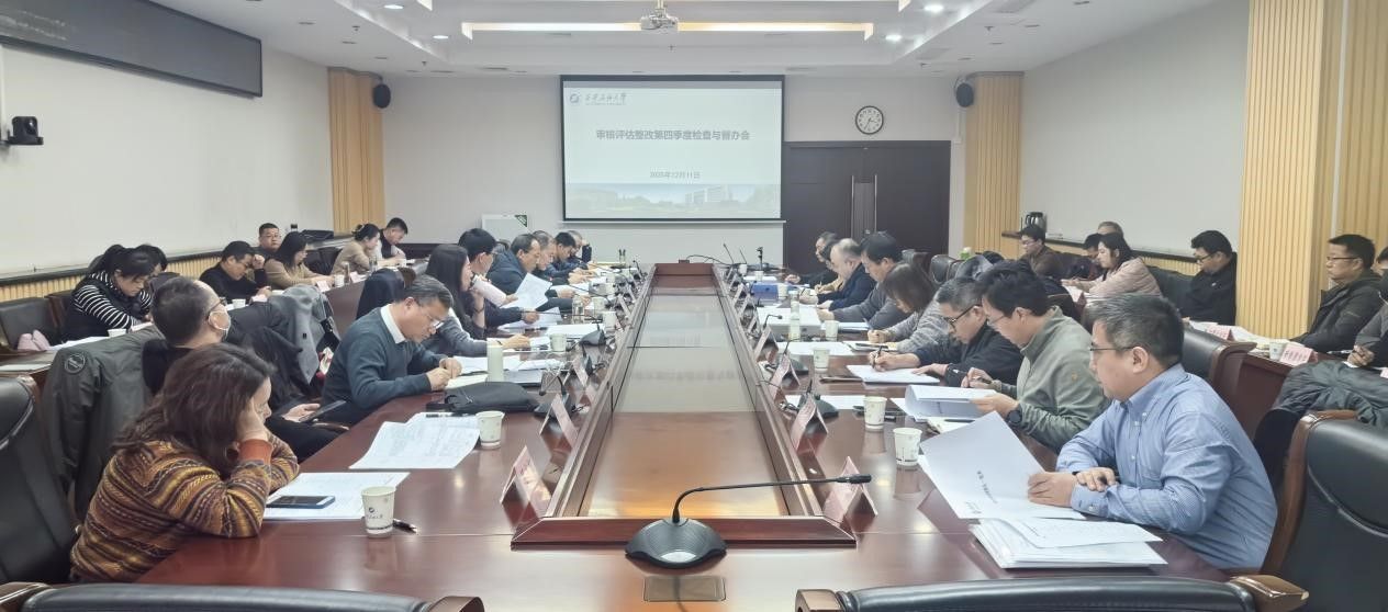 会上,高教研究与评估督导中心副主任申燕汇报了审核评估整改整体推进情况及下一步安排,同时围绕2025年高校质量监测国家数据平台数据采集工作,详细说明工作进度、存在问题及具体要求。党委办公室(校长办公室)、党委组织部、高教研究与评估督导中心主要负责人代表学校督办组,依据《beat365官方网站本科教育教学审核评估整改工作实施方案》(西石大高〔2024〕237号),对15家主办单位的整改支撑材料进行现场检查与质询,逐条核查进展成效,反馈整改亮点、问题及改进建议。发展规划处等6家组长单位分别汇报第四季度整改推进情况、阶段性成效,剖析现存困难,明确下一步工作思路及举措,为后续精准施策铸牢基础。