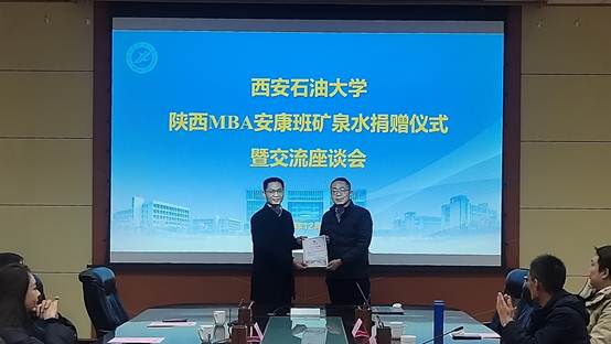 活动中,安康班学员集体向经济管理学院捐赠安康富硒矿泉水,以此表达对学院培养的感恩之情,并进一步深化校地、校企之间的情感纽带与合作关系。