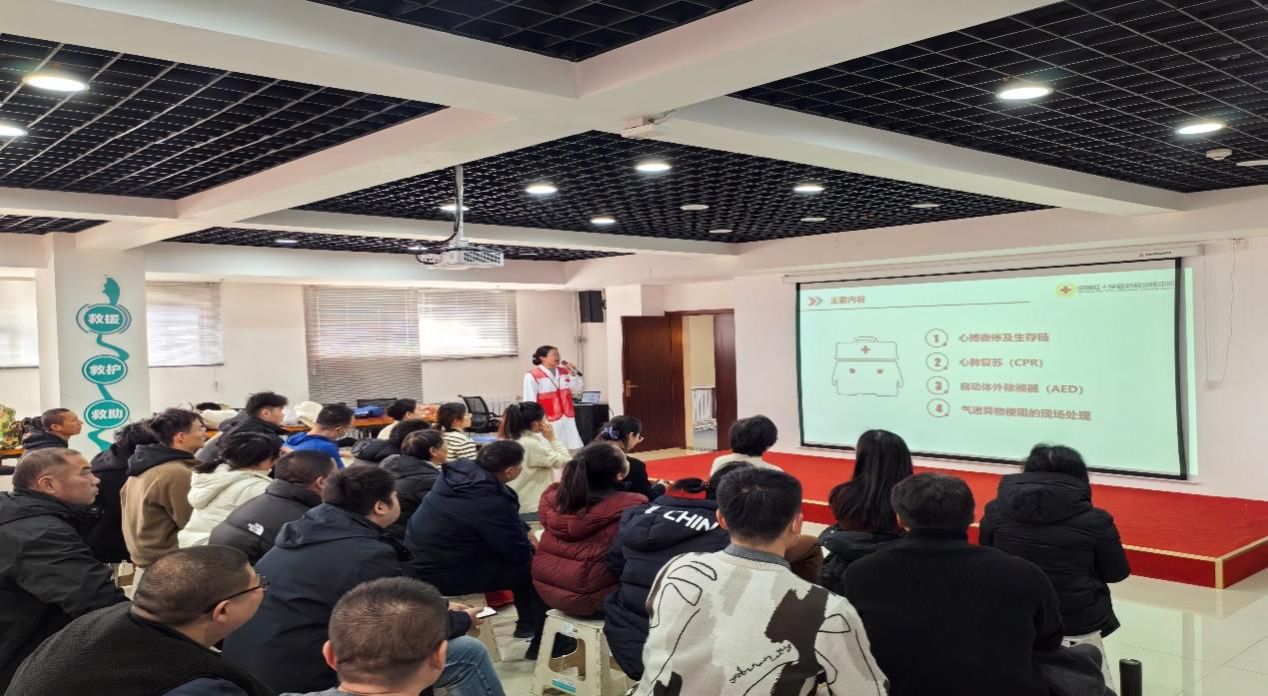 为进一步普及应急救护知识,扎实推进第三批“急救校园”建设落地生效,提升教职工应对校园突发状况的处置能力,2025年12月24日下午,鄠邑区红十字会、校工会、校医院联合组织开展第四期教职工应急救护技能专项培训。全校40余名保卫人员、辅导员等教职工及部分学生代表参训,为校园安全工作注入专业力量。
