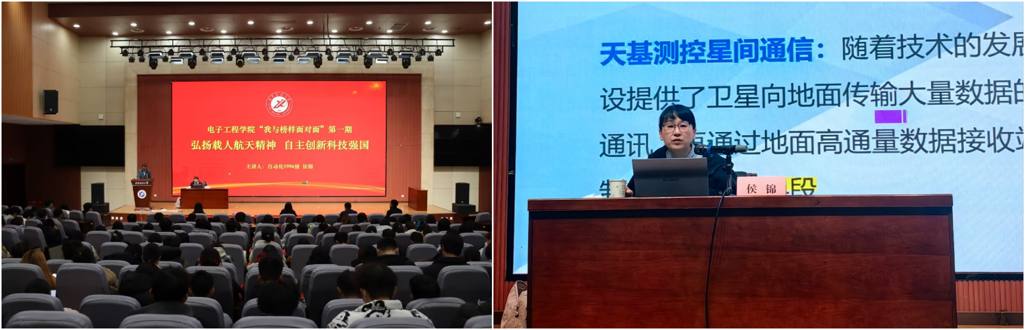 构建“线下交流+线上宣传”多元榜样引领体系,全方位强化研究生思想与学术价值引导。12月4日下午,举办首期“我与榜样面对面”报告会,邀请1996级自动化专业校友、中国电科三十九所研究员、“全国五一劳动奖章”获得者侯锦,以“弘扬载人航天精神 自主创新科技强国”为题作报告,我院400余名师生参会。她结合航天项目经历诠释航天精神,分享家国情怀,勉励学生坚定理想、勇于创新,并现场解答学生学术与职业规划疑问,有效激发了学生奋进动力。