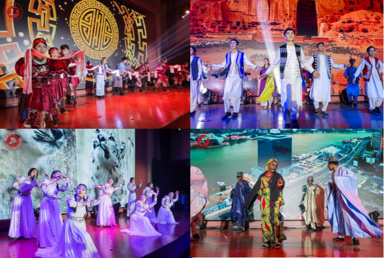 晚会在哈萨克斯坦、印尼、吉尔吉斯斯坦、乌干达四国学生多语宣告中拉开帷幕。整场演出涵盖舞蹈、合唱、时尚秀、小品等类别节目,精彩纷呈、高潮迭起。蒙古传统舞蹈刚劲豪迈,阿富汗特色舞姿灵动曼妙,合唱《喀秋莎》唤醒经典记忆;25国50余名学子带来的“Gala of Style”时尚秀上,各国服饰轮番亮相,展现多元文化的独特魅力;巴基斯坦地方舞蹈活力四射,合唱《我的歌声里》温柔缱绻,中亚舞蹈串烧节奏明快,小品《重生之我在西安学汉语》更引得全场笑语不绝;教职工代表带来的舞蹈《五哥放羊》韵味悠长,展现师者风采;孟加拉国独唱《Almost is Never Enough》情感饱满,非洲五国舞蹈串烧则热情似火;预科班学子合唱的《爱》传递温暖情谊,随后的多人舞蹈《旋舞万方》更是灵动翩跹;而孟加拉国传统舞蹈则风情浓郁,尽显文化交融之美;最后,全场共同唱响《We Are the World》,晚会在温馨热烈的氛围中圆满落幕。