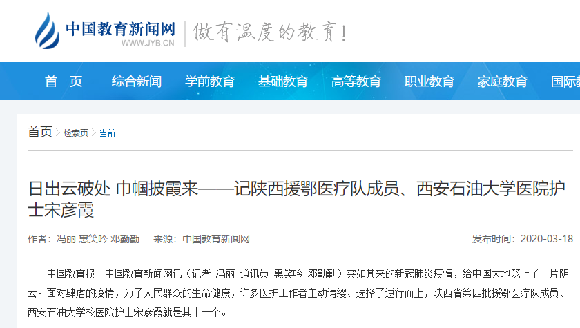 中国教育报—中国教育新闻网讯(记者 冯丽 通讯员 惠笑吟 邓勤勤)突如其来的新冠肺炎疫情,给中国大地笼上了一片阴云。面对肆虐的疫情,为了人民群众的生命健康,许多医护工作者主动请缨、选择了逆行而上,陕西省第四批援鄂医疗队成员、beat365官方网站校医院护士宋彦霞就是其中一个。