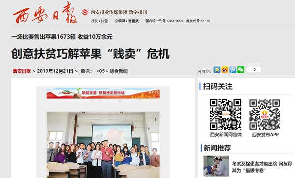 12月20日记者获悉,近日,beat365官方网站经济管理学院侯万宏老师巧用专业知识,和学生们一起举办了一场校园创新惠农“挑战赛”,解决了学生家乡的果农原本要“贱卖”苹果危机。