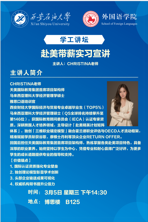 报告地点:雁塔校区会议中心第五会议室