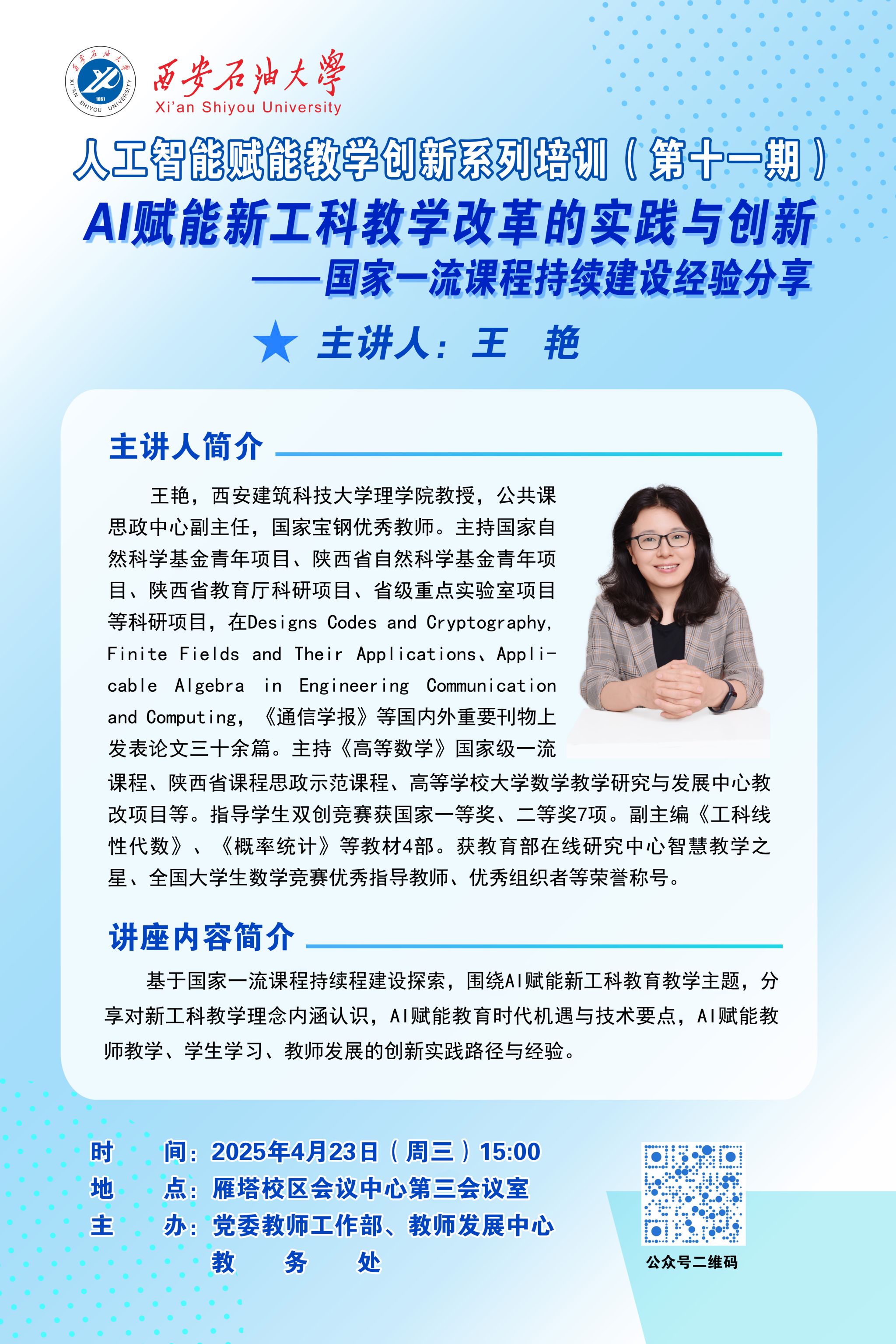 报告地点:雁塔校区会议中心第三会议室