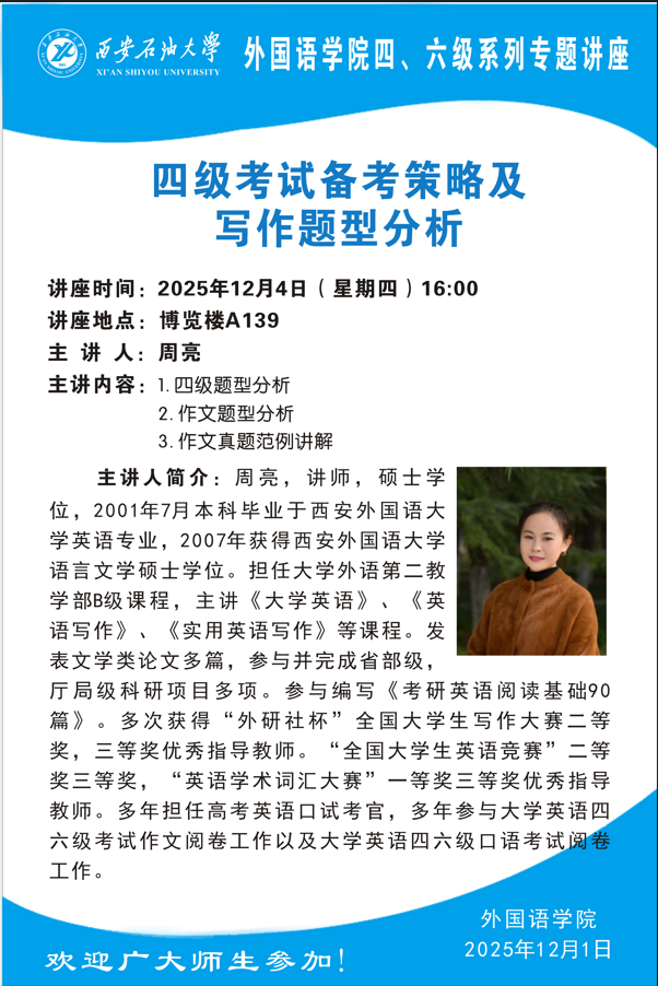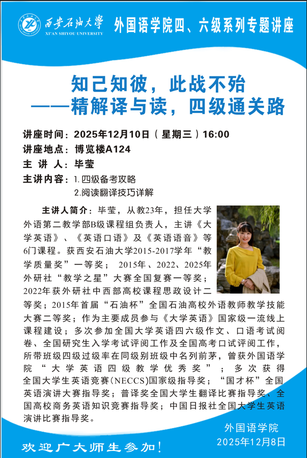 报告地点:鄠邑校区博览楼A110智慧大讲堂