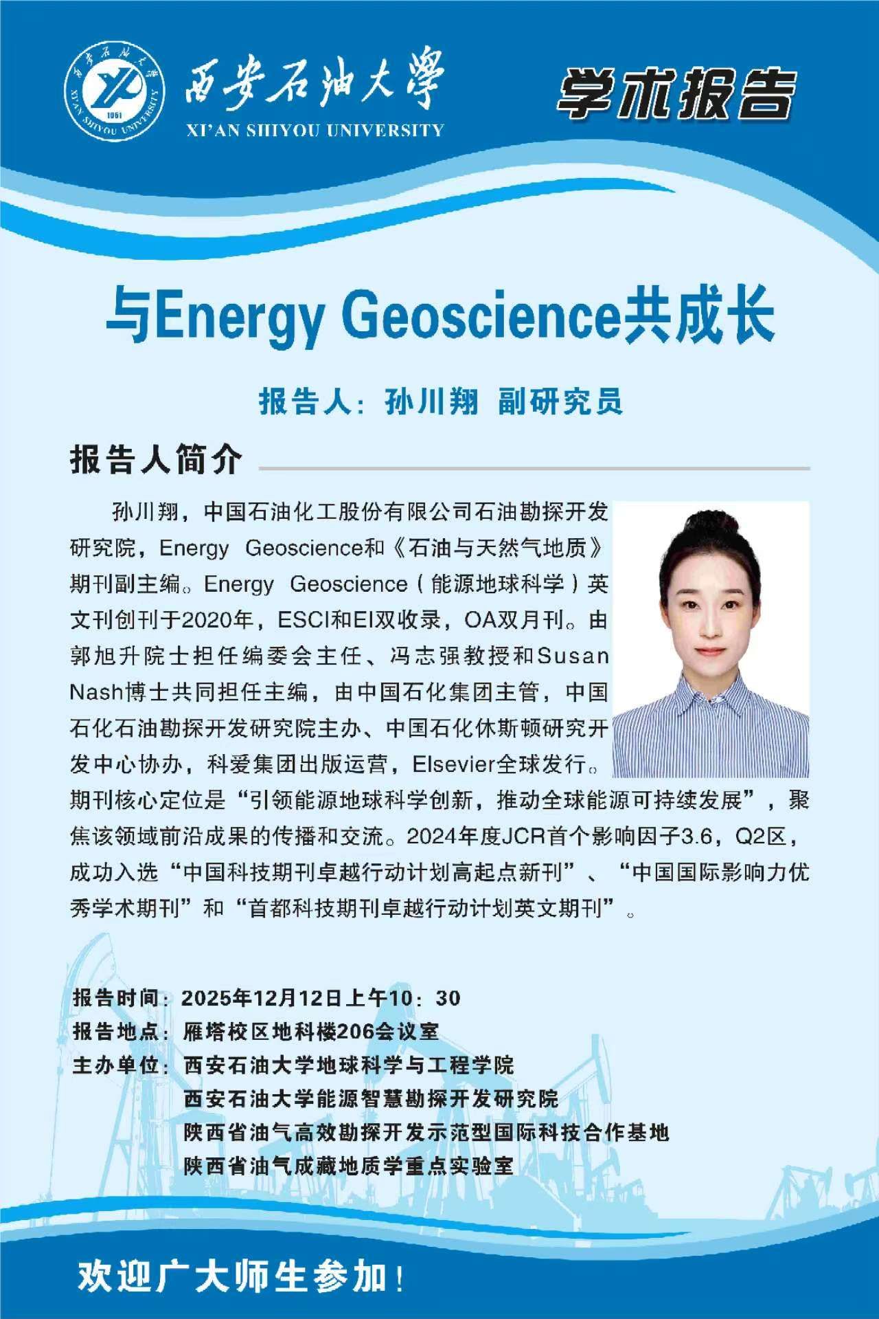 报告地点:雁塔校区地球科学与工程学院206会议室