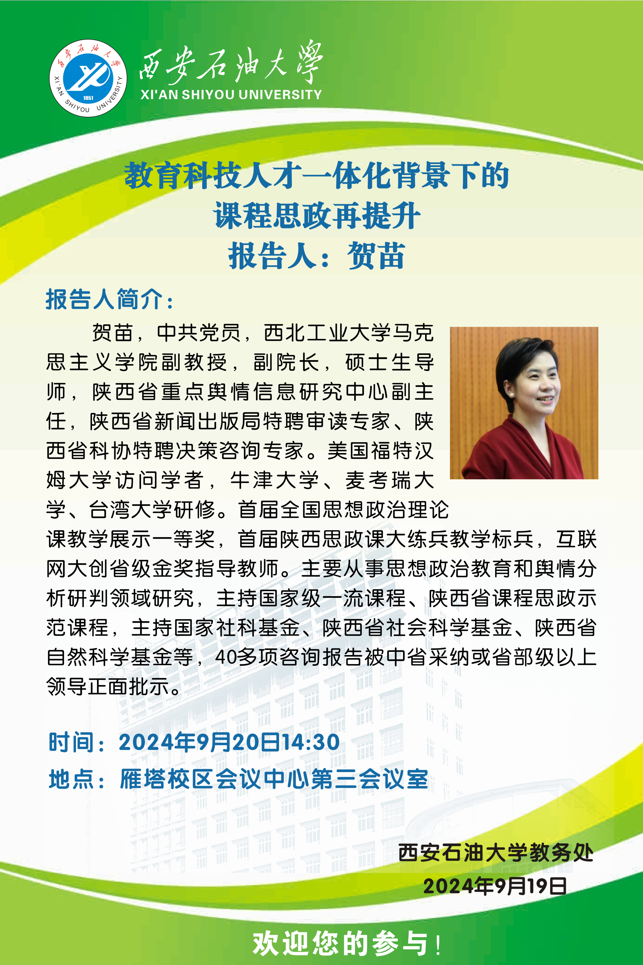 beat365官方网站是西北地区唯一一所以石油石化为特色的多科性普通高等学校,陕西省人民政府和国家三大石油公司共建院校。学校是国家“十四五教育强国推进工程”建设高校、陕西省“双一流”培育高校和高水平大学建设院校,是中国政府奖学金来华留学生自主招生院校。