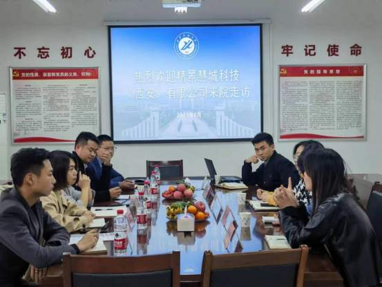 王莹副书记首先对精景慧城(西安)科技有限公司莅临学院洽谈合作表示热烈欢迎,并介绍了学院的学生概况、专业分布、社会实践等情况。随后刘群总经理介绍了公司的主营范围、产品优势及发展规划,并表示欢迎学生在校期间来公司开展社会实践活动。双方就共建社会实践基地、实习实训基地及毕业生就业实习等方面进行深度洽谈。